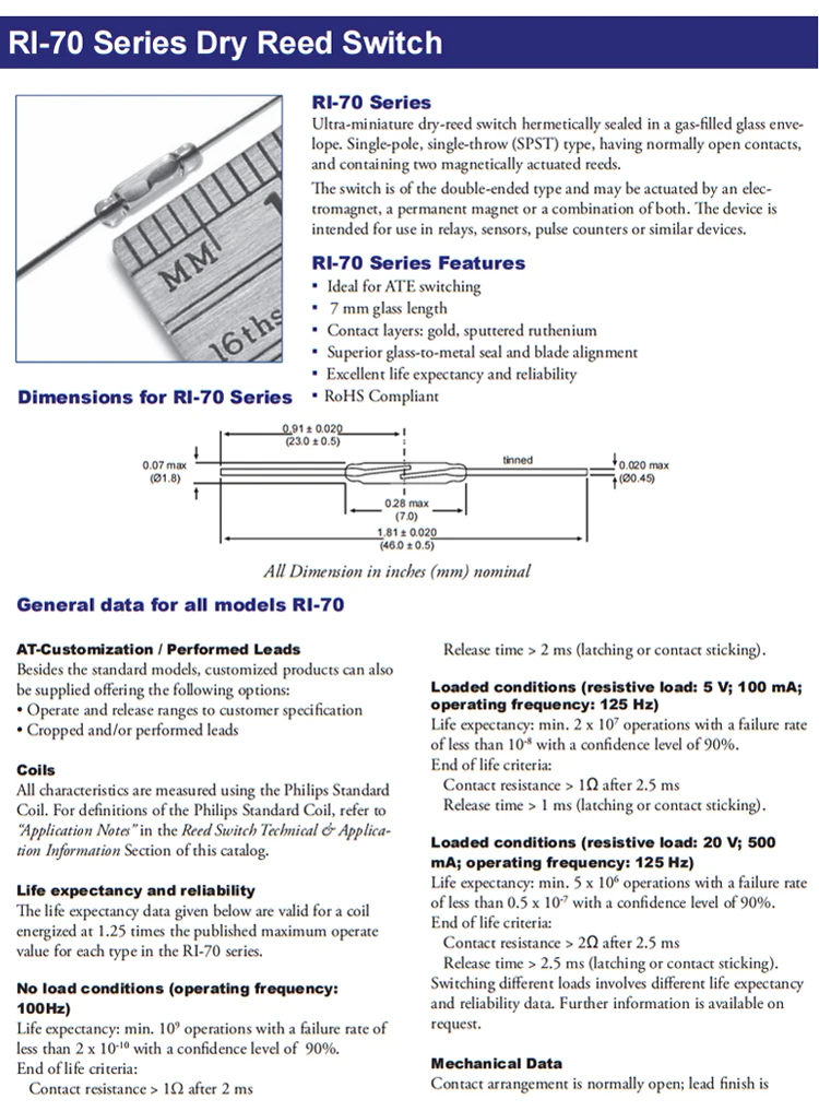 Геркон 1,8*7 мм Сенсор геркон переключатели нормально разомкнутый 100% оригинальный DIY Электронный комплект 1.8X7mm нет