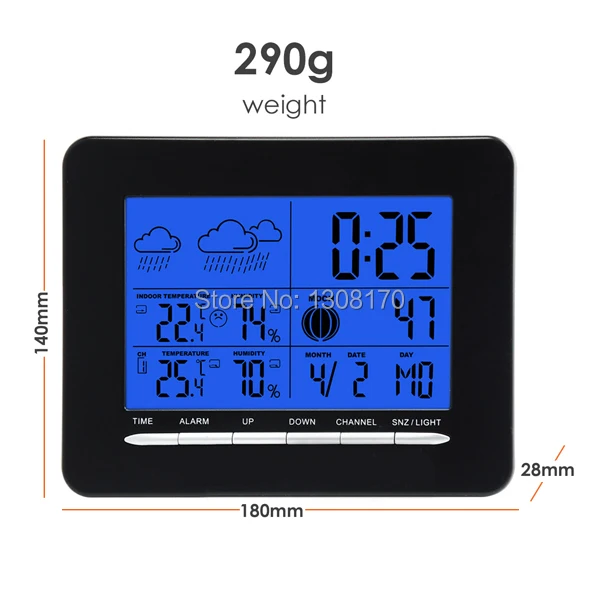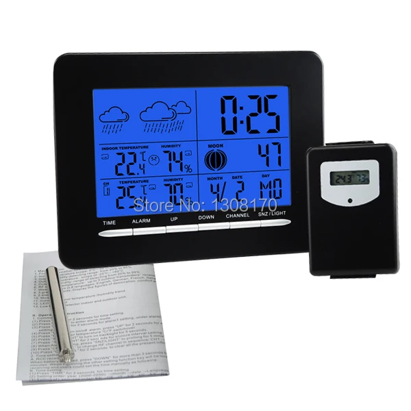 Эта усовершенствованная беспроводная погодная станция является отличным устройством для одновременного мониторинга температуры и влажности в помещении и на открытом воздухе. Он также предоставляет вам информацию о погоде с четырьмя различными значками (солнечный, немного облачно, облачно, дождливо).