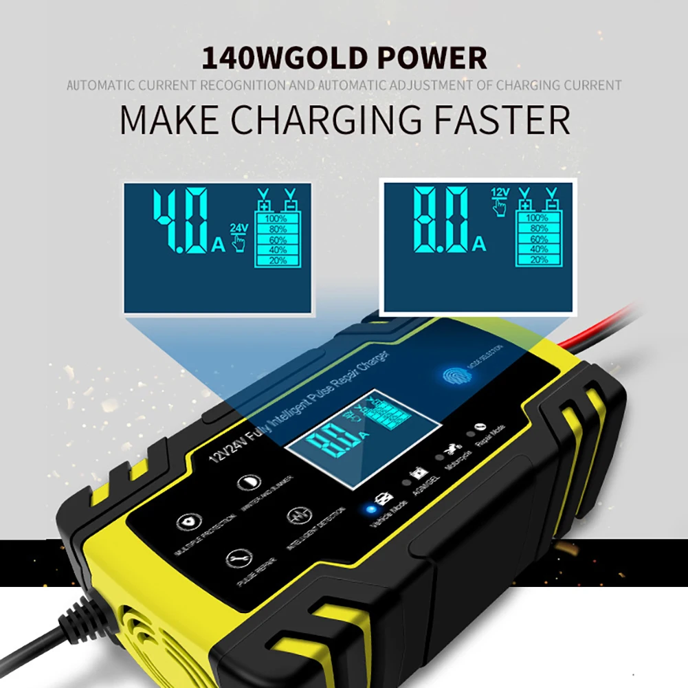 -Подходит для большинства типов батарей, включая кальций, гель и AGM, влажные батареи. Они также могут помочь восстановить сливные и сульфированные батареи.