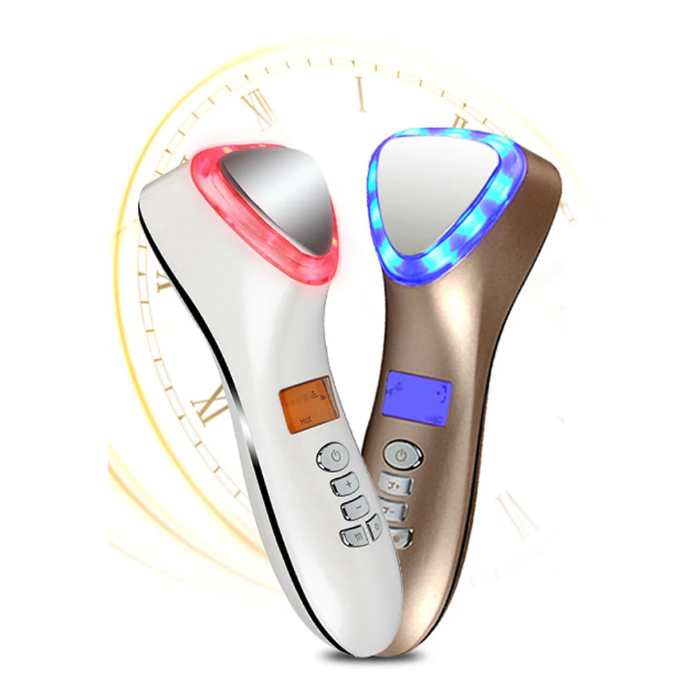 1. Название продукта: 7 светодиодный ультразвуковой горячий холодный массажер для лица 2. Мощность: 1 Вт 3. Номинальное напряжение: DC5V 4. Напряжение 3,7 в 5. Батарея: литиевая батарея 1000 мАч 6. Материал: АБС 7. Время зарядки: 2 ч 8. Размеры: 50x50x150 мм Обработка кода (5-10 °C): 1. Сужает поры кровеносных сосудов, улучшает грубые поры; 2. Укрепляет коллагенное волокно, делает вашу кожу эластичной, от морщин И гусиные ноги; 3. Эффективно уменьшает варикозное расширение вен, опасные отходы, скорее всего, будут очищены, Может помочь выцветать и устранять темные пятна; 4. Для снижения чувствительности к нервам, уменьшения усталости и отеков кожи, особенно Для чувствительной кожи. Горячая обработка (40-45 °C): 1. Согревает, делает человека теплым и удобным, расслабляющий мышцы, снимает боль и болезненность; 2. Способствует циркуляции крови и помогает лучше впитывать продукты по уходу за кожей; 3. Улучшает метаболизм кожи, выводит токсины, помогает выцветать мешочек для глаз и темный круг. Светодиодный свет: 1. Красный свет: отбеливание кожи и увлажнение 2. Синий свет: разглаживает морщины 1. Омоложение кожи, сужает поры, подтягивание кожи, улучшает эластичность кожи и блеск кожи. 2. Лимфодренаж, улучшает кровообращение, помогает детоксикации. 3. Помогает изделиям по уходу за кожей глубоко впрыснуть в кожу, избегая высвобождения питания. Держите увлажняющий крем. 4. Удаление морщин, анти-отечность. 5. Лифтинг для лица, отбеливание, удаление черного круга. 6. Стимулирует кровообращение, лимфодренаж, Детокс. Посылка включает в себя: 1x ультразвуковой массажер для лица горяче-холодный молоточек 1x Мощность адаптер 1x руководство по эксплуатации на английском языке