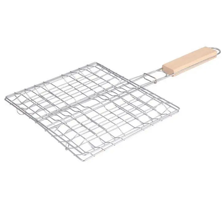 Железная проволока Гамбург гриль мясо рыба клип барбекю сетка деревянная ручка корзина Инструменты для барбекю на открытом воздухе Кемпинг Пикник Кухонные гаджеты JE