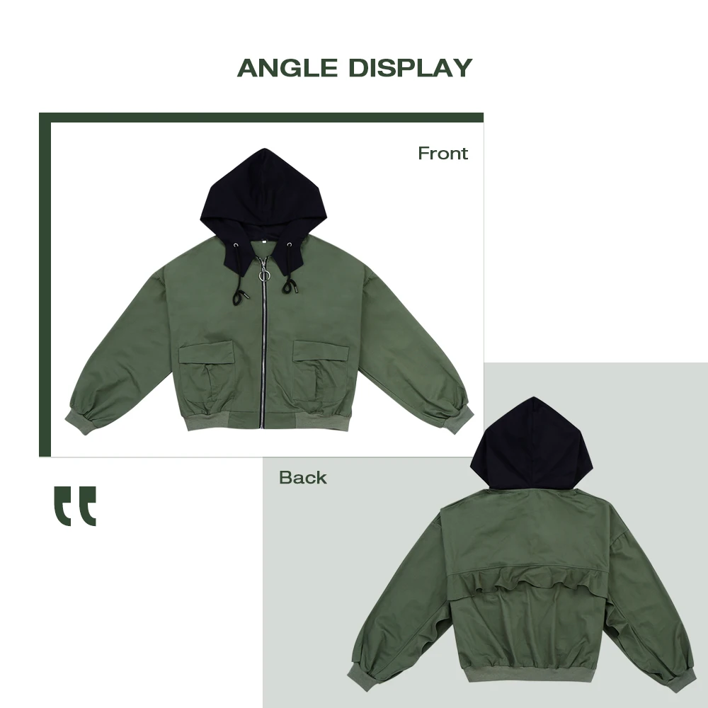 Осенне-зимняя женская короткая толстовка с капюшоном армейская зеленая куртка на молнии с длинными рукавами и карманами на завязках пальто с капюшоном в стиле милитари Укороченный свитшот