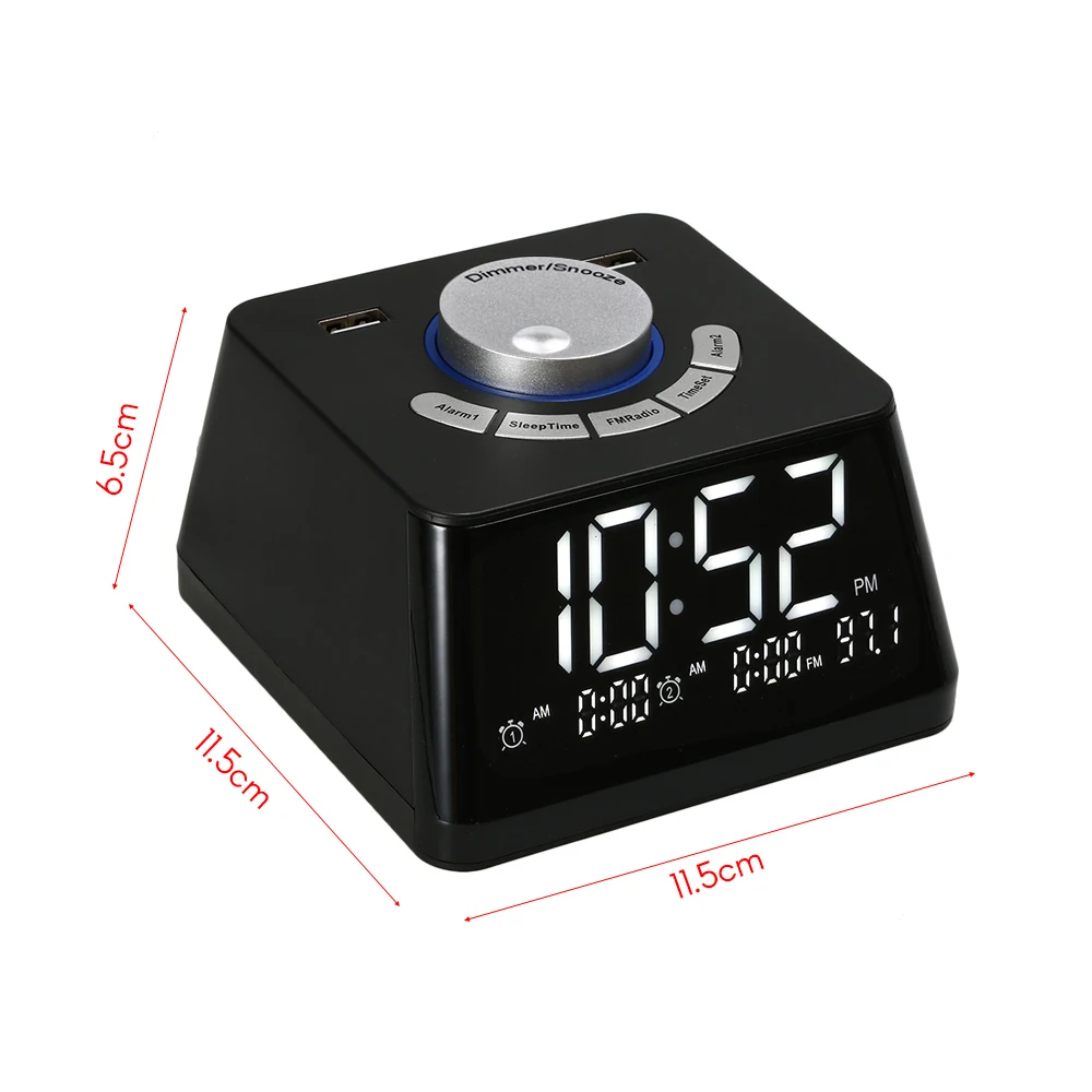 Цифровые часы-будильник с регулируемым регулятором громкости и двойным регулятором температуры, цифровые часы с fm-радио, USB/батарея, настольные часы