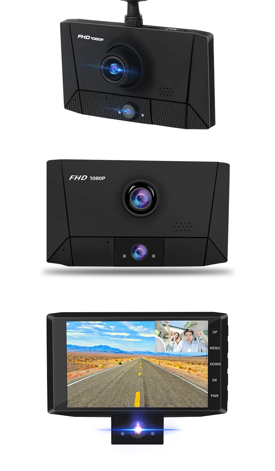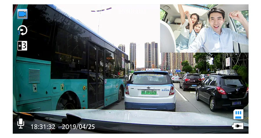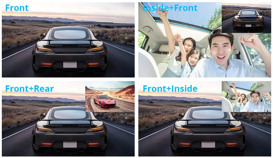 Помимо переднего и заднего вида, вы также можете наблюдать за всем, что происходит внутри автомобиля. Можно выбрать другой режим просмотра экрана, до и после двойной записи, автомобиль внутри и снаружи той же записи, большой широкий угол высокого разрешения качество изображения, более широкое видение, вождение более безопасным.