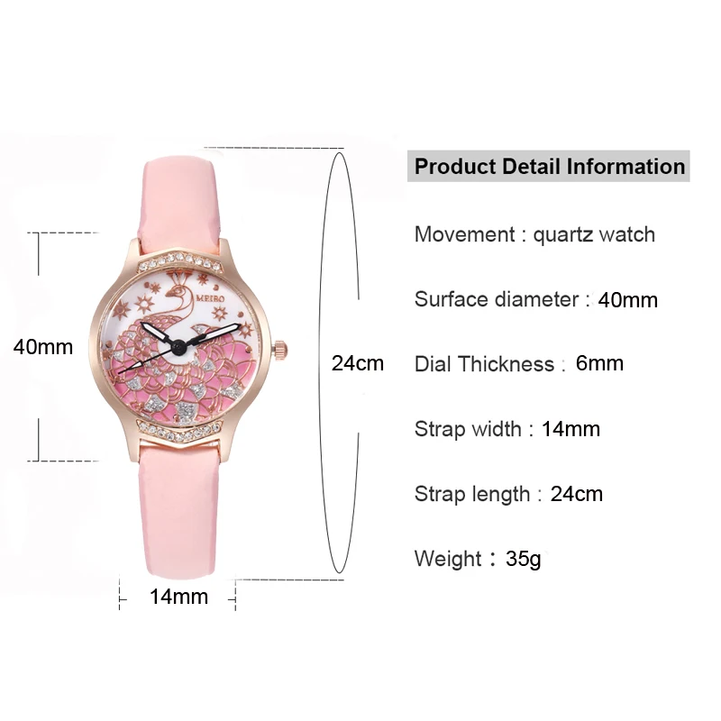 Особенности: -Модный и повседневный -Отображает дату и время Обеспечивает большую прочность сплава Технические характеристики: -Чехол Материал: сплав -Чехол Диаметр: 40 мм -Чехол Толщина: 6 мм -Материал ремешка: кожа -Длина ремешка: 240 мм -Ширина ремешка: 14 мм Посылка в комплект входит: 1 x часы Для женщин