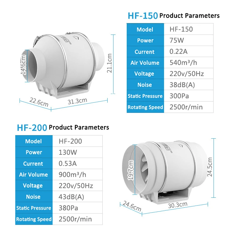 Вытяжка Воздуха: 320 m & sup3;/час (4 ''), 540 m & sup3;/час (6''), 900 m & sup3;/час (8 '')