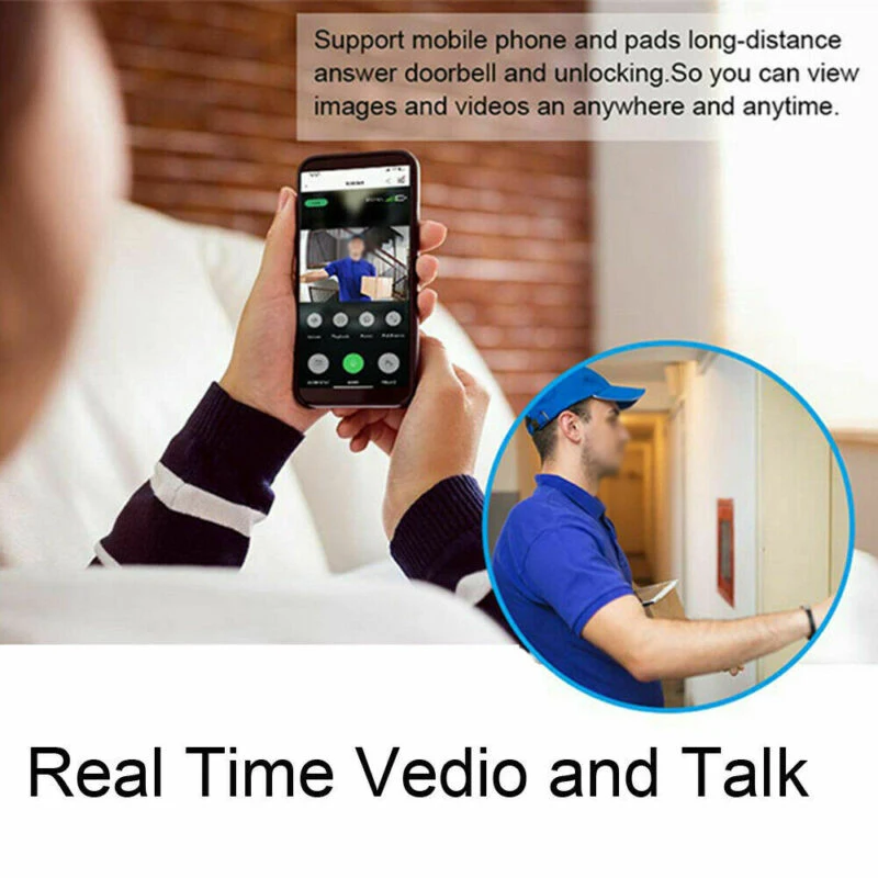 *Когда гость звонит в дверной звонок, телефон запустится, камера начнет отправлять изображения в реальном времени и позвонить телефону. Пользователь получит звонок, чтобы проверить, кто гость. Затем поговорите с гостем и Разблокируйте дверь удаленно