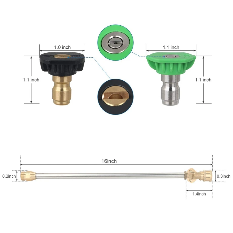 * 16-дюймовый шпилька для мойки высокого давления насадка с быстрого подключения стержень муфта-лучшее сочетание для мойки высокого давления. Он также поставляется с 5 наконечниками сопла свободного давления. Удовлетворяйте ваши потребности в различных ситуациях, таких как полива цветов и растений, мытье автомобилей и т. Д.