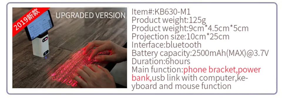 Есть две лазерные клавиатуры: Черный классический и белый апгрейд (с кронштейном и функцией мобильного питания) выделяются следующим образом. Пожалуйста, заказывайте в соответствии с фактическими потребностями