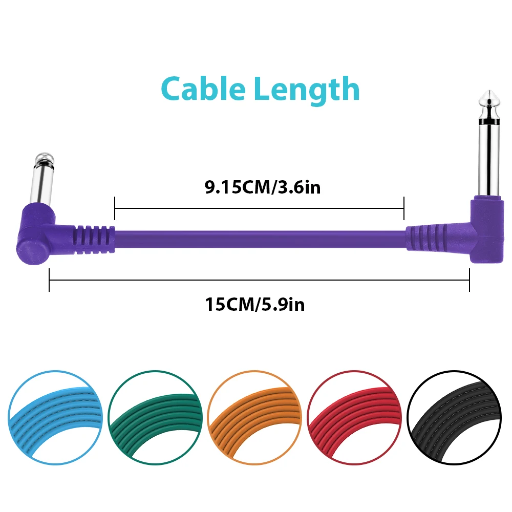 Эффектные кабели для педалей с низкой емкостью и высококачественной конструкцией для чистой передачи сигнала и длительного срока службы, длиной 15 см, упаковка из 6 шт.