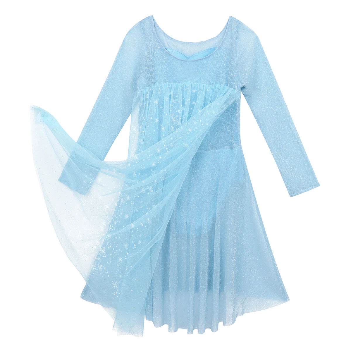 Спинка прикреплена сетчатой накидкой с рисунком блестящей снежинки. Красивая Одежда для танцев для вашей девочки.