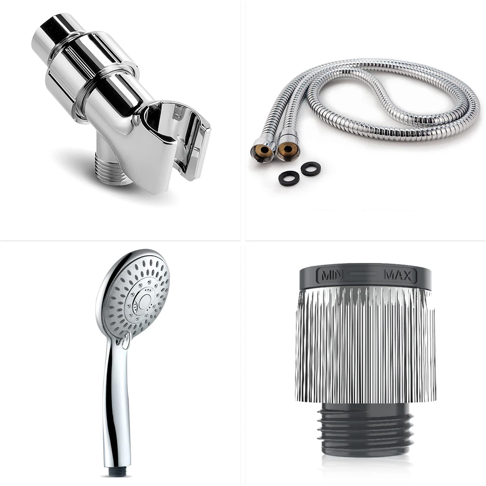 Ручная душевая головка с шлангом из нержавеющей стали и регулируемым кронштейном, который имеет 5 настроек распыления для вашего выбора, различные настройки обеспечивают полный индивидуальный душ. Хромированная отделка прочная и красивая, создана для защиты от царапин, потускнения и коррозии, подходит для семьи, отеля и школы и т. д.