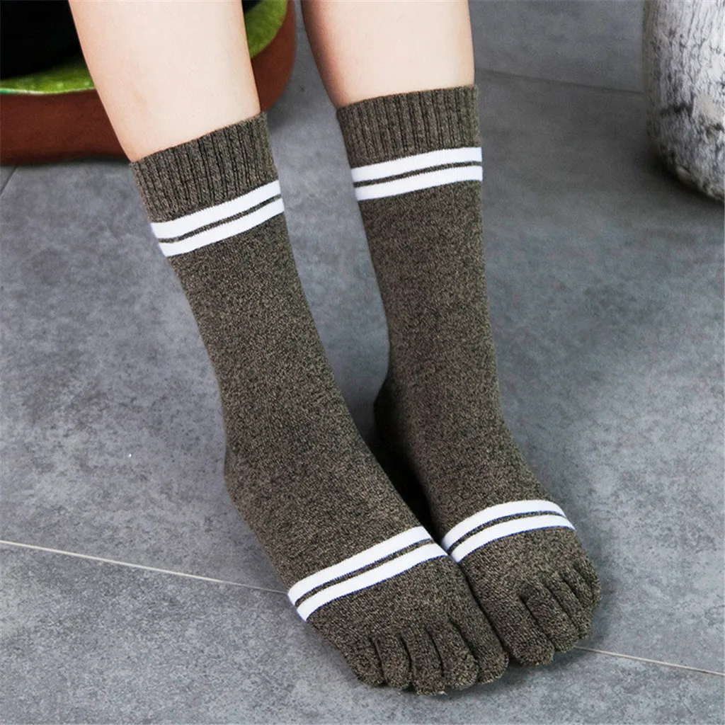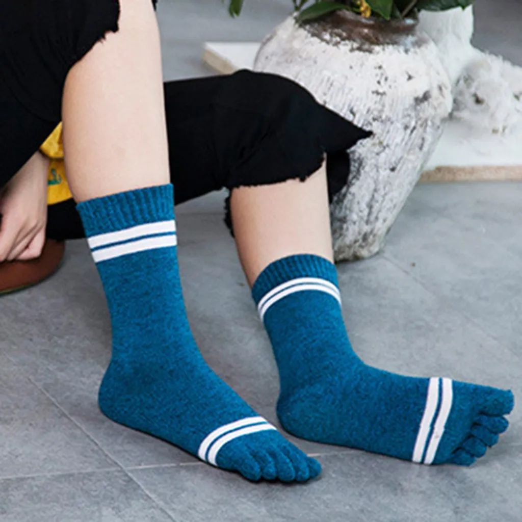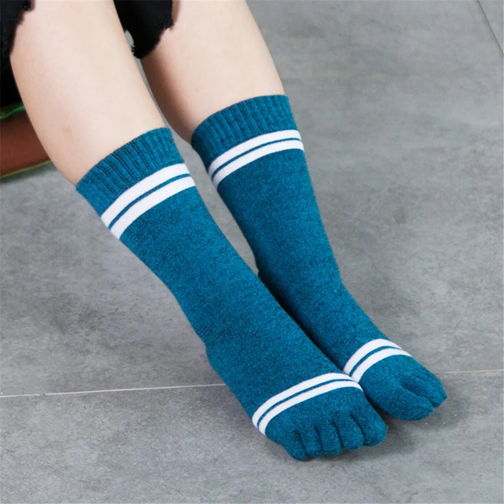 Женские разноцветные носки с принтом, носки с пятью пальцами, теплые забавные носки