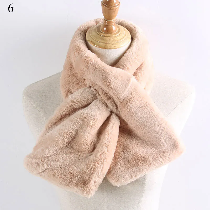Женская зимняя плотная однотонная плюшевая шаль из искусственного кроличьего меха с перекрестным воротником
