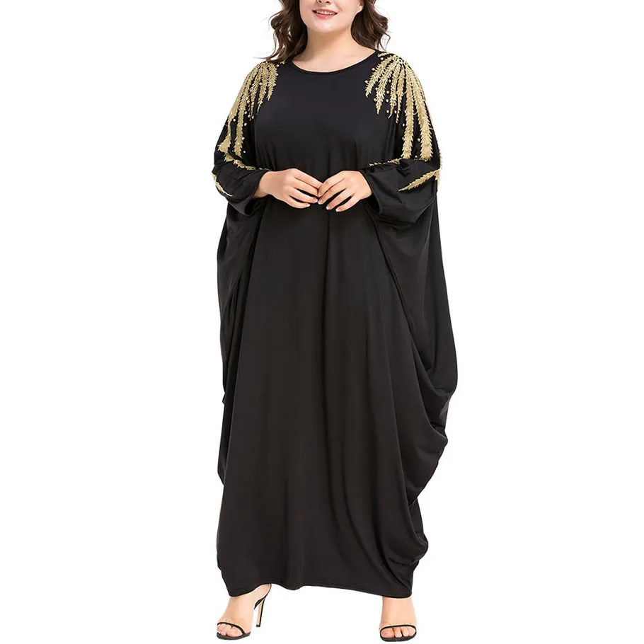 Плюс Размеры Для женщин халат Бисер длинный рукав, мусульманский арабское платье Турецкий халат марокканский Восточный халат с поясом из г. Дубай Исламская Абая платье "Рамадан"