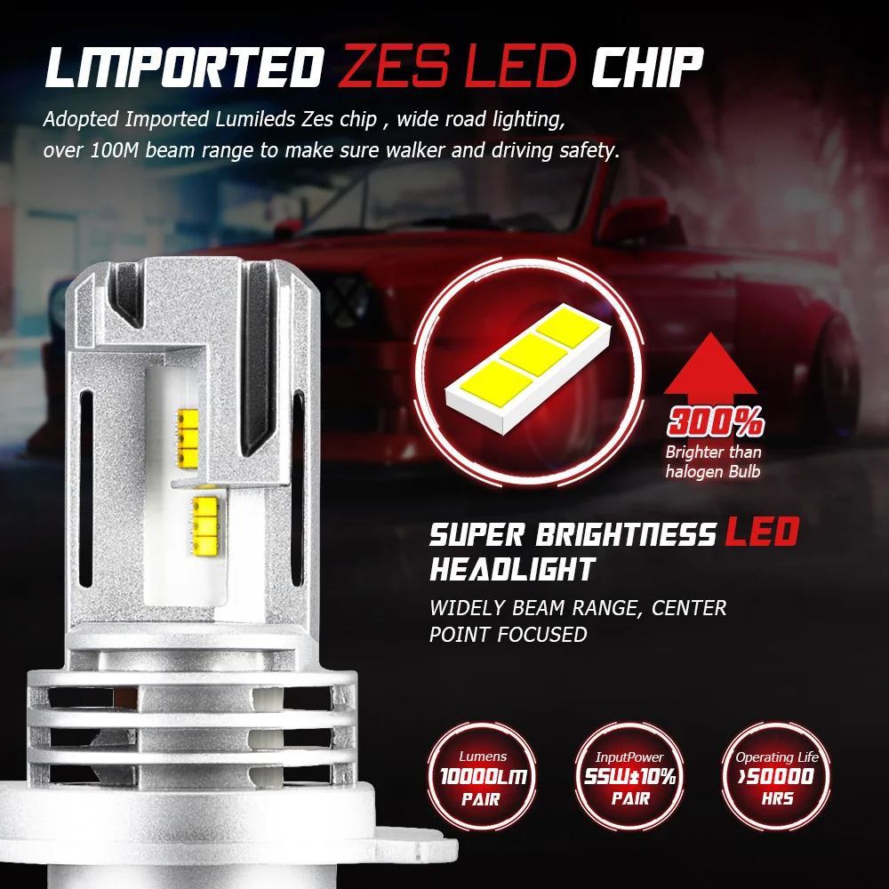Novsight 2 шт. H4/H5/H7/9005/9006 55 Вт Автомобильный светодиодный Сменные лампы фар комплект ZES дальнего света 6000 K
