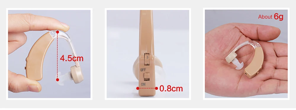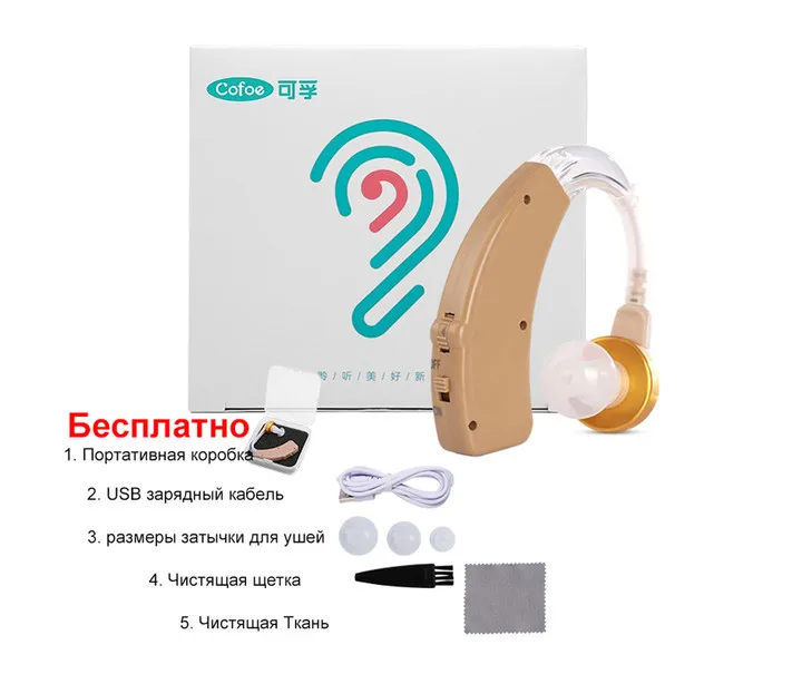 * Не вызывает болезненных ощущений С равномерной силой, легкий вес до 8 г; * Двойная подавление шума Встроенная двойная система шумоподавления, обеспечивает более четкий звук; * Умный чип с автоматическим уменьшением Он доступен для всех людей с плохим слухом и не нуждается в отладке перед ношением; * Приемник с чистым звуком Чистый звук из хорошего материала; * Долгое время работы от батареи Ni-mh аккумуляторная батарея с высокой емкостью и циркулярной зарядкой для рассеивания и длительного использования низкой мощности; * Легкий и маленький, удобный для хранения Удобно носить с собой для небольшого объема и легкого веса; * Медицинский силиконовый ушной крючок Медицинский экологически чистый TPE материал, удобный в носке, мягкий на ощупь, растягивается многократно без деформации; • Изысканная упаковка Подходит для хранения и переноски