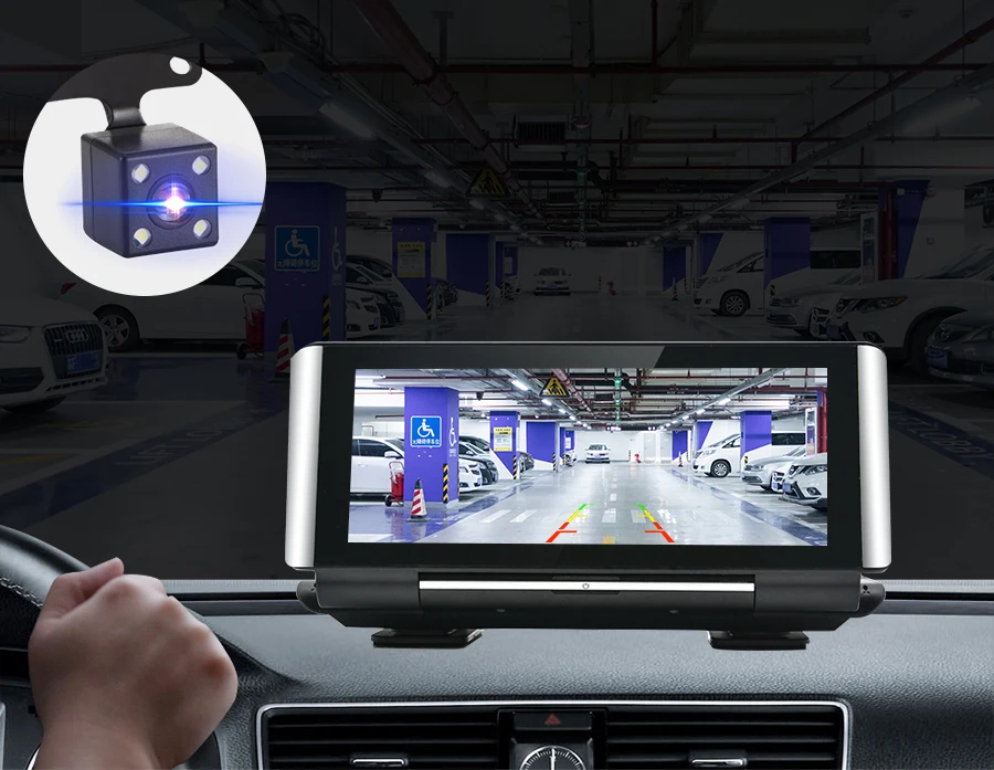 Когда автомобиль находится в обратном направлении, этот Автомобильный видеорегистратор GPS автоматически переключается на изображение камеры заднего вида с помощью линии парковки
