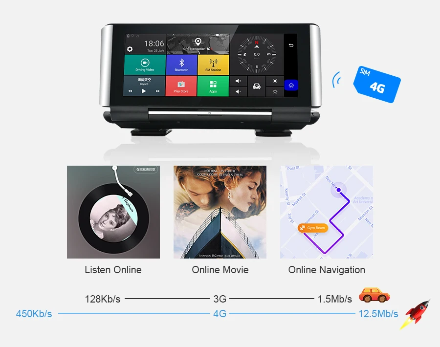 4G модуль для sim-карты (Интернет) + WIFI модуль маршрутизатор = серфинг быстрееБлагодаря sim-карте 4G и встроенному Wi-Fi, независимо от того, где вы едете, вы будете наслаждаться удовольствием от интернет-серфинга, что делает его возможным для онлайн-навигации/музыки/кино и т. Д. Используйте онлайн-карту, чтобы сделать интеллектуальную навигацию, избегайте интенсивного движения. Наслаждайтесь фильмами и музыкой для вождения, получайте больше удовольствия.