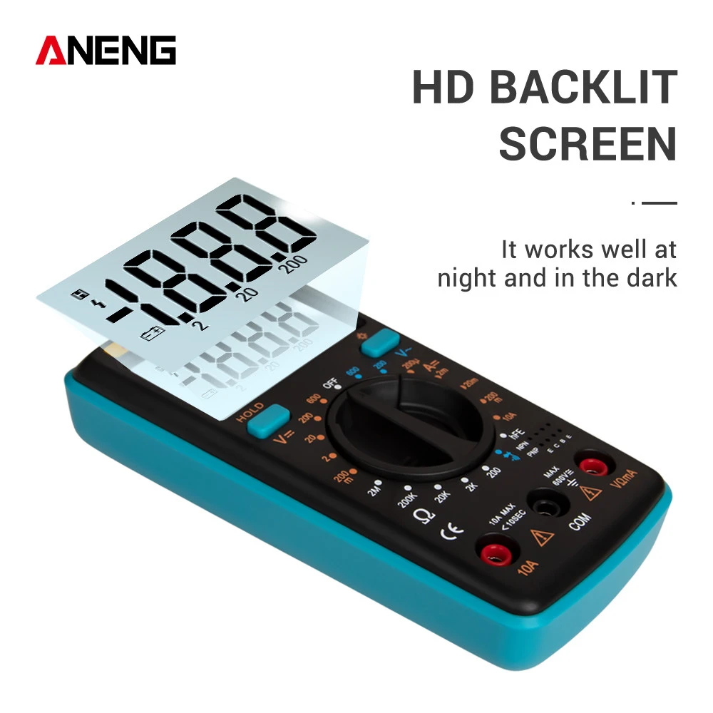 Счетчик Ручной цифровой мультиметр 3 1/2 для измерения напряжения постоянного и переменного тока, постоянного и переменного тока, сопротивления, диодов, транзисторов и непрерывности теста с батарейным питанием. Для специальных моделей также используется для тестирования freguency, температуры, емкости и NCV.