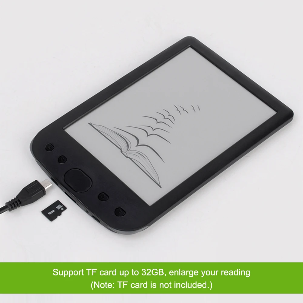 6 дюймов E-ink Экран: 800*600 разрешение без каблука на основе технологии e-ink Экран читает как настоящие бумага без бликов, четкие слова, легко читать. Вы можете читать на солнце светильник, не отражающий светильник. Электронный Считыватель поддерживает функцию освещения экрана, вы можете регулировать яркость, чтобы соответствовать окружающей среде чтения.