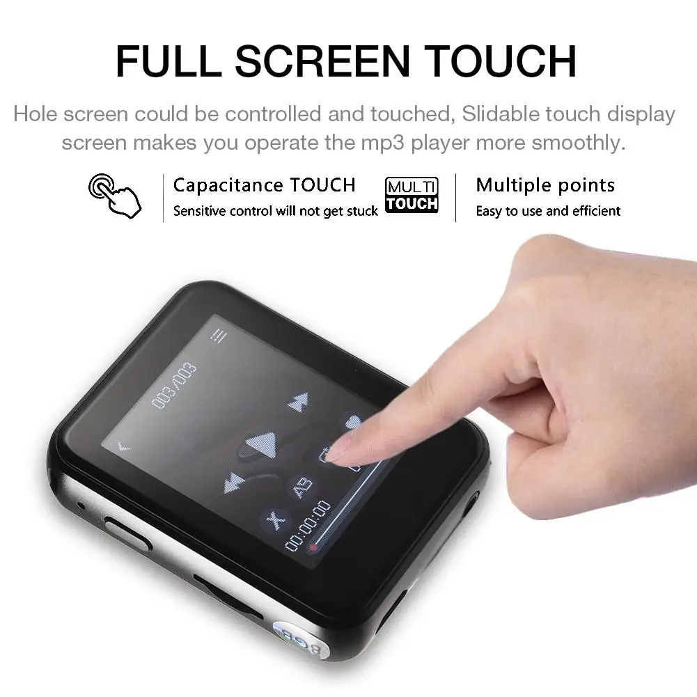 2 、 высокочувствительный и полный Экран сенсорный экран: Этот walkman имеет 1,7 дюймов Высокочувствительный ЖК-дисплей гиперболические Зеркало сенсорный экран Экран, удобно лежит в руке, устойчивым к царапинам и прочный. Весь экран может управляться и касаться, скользящий сенсорный экран позволяет управлять MP3-плеером более плавно. IPS HD LCD экран обеспечивает ультра HD качество для MP3 интерфейса. Удобно блокировать экран, нажав кнопку питания.