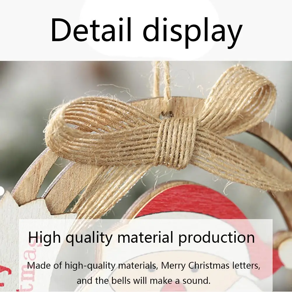 DIY Санта Клаус деревянный Рождественский кулон-венок креативный бант с колокольчиком деревянное кольцо подвесная тарелка Рождественская елка подвесное украшение