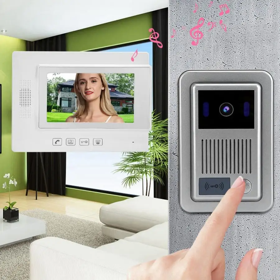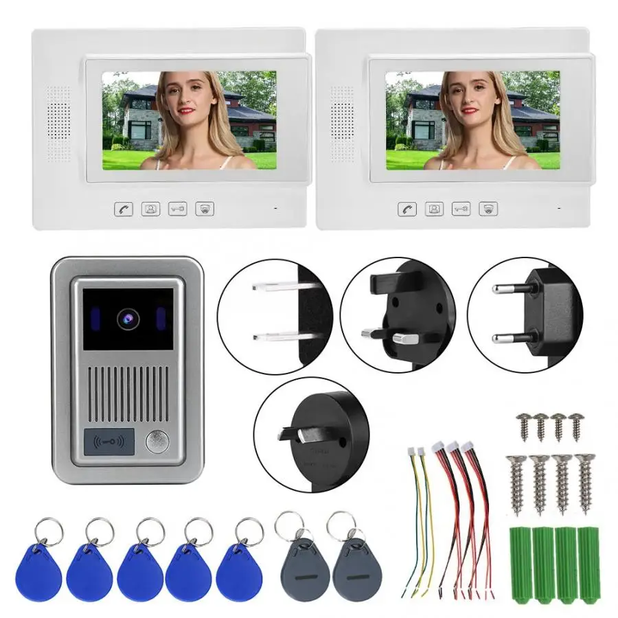 1V2 LCD 7in видео домофон безопасности домофон ID карта дверной звонок 100-240 В