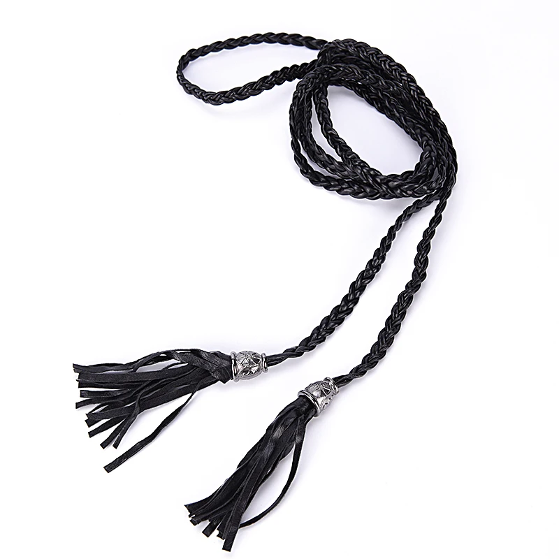 1 Pack Boho Women Simple PU Leather Tassel Woven Self-Tie Belt Thin Waist Cord Belt New Fashion Trend