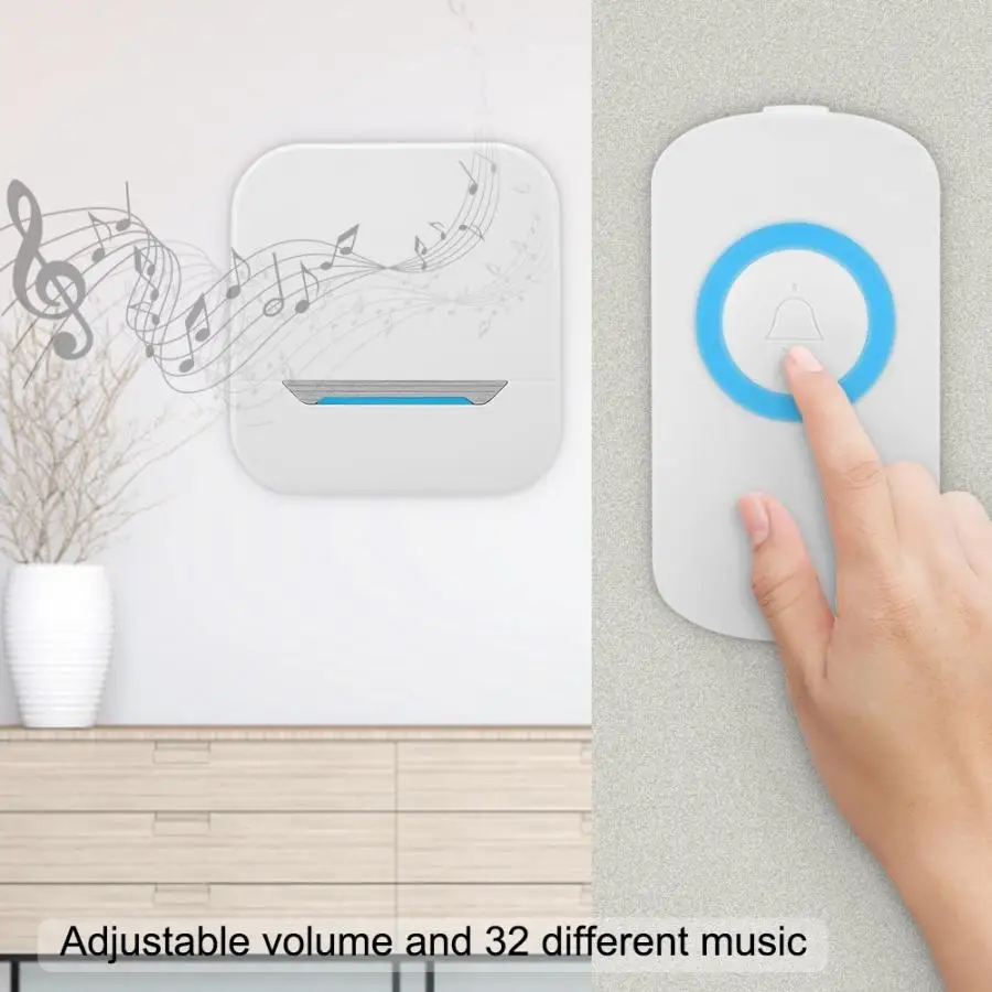 Умный беспроводной дверной звонок с дистанционным управлением, приемник, светодиодный светильник, IP55 Водонепроницаемый 110-240 В