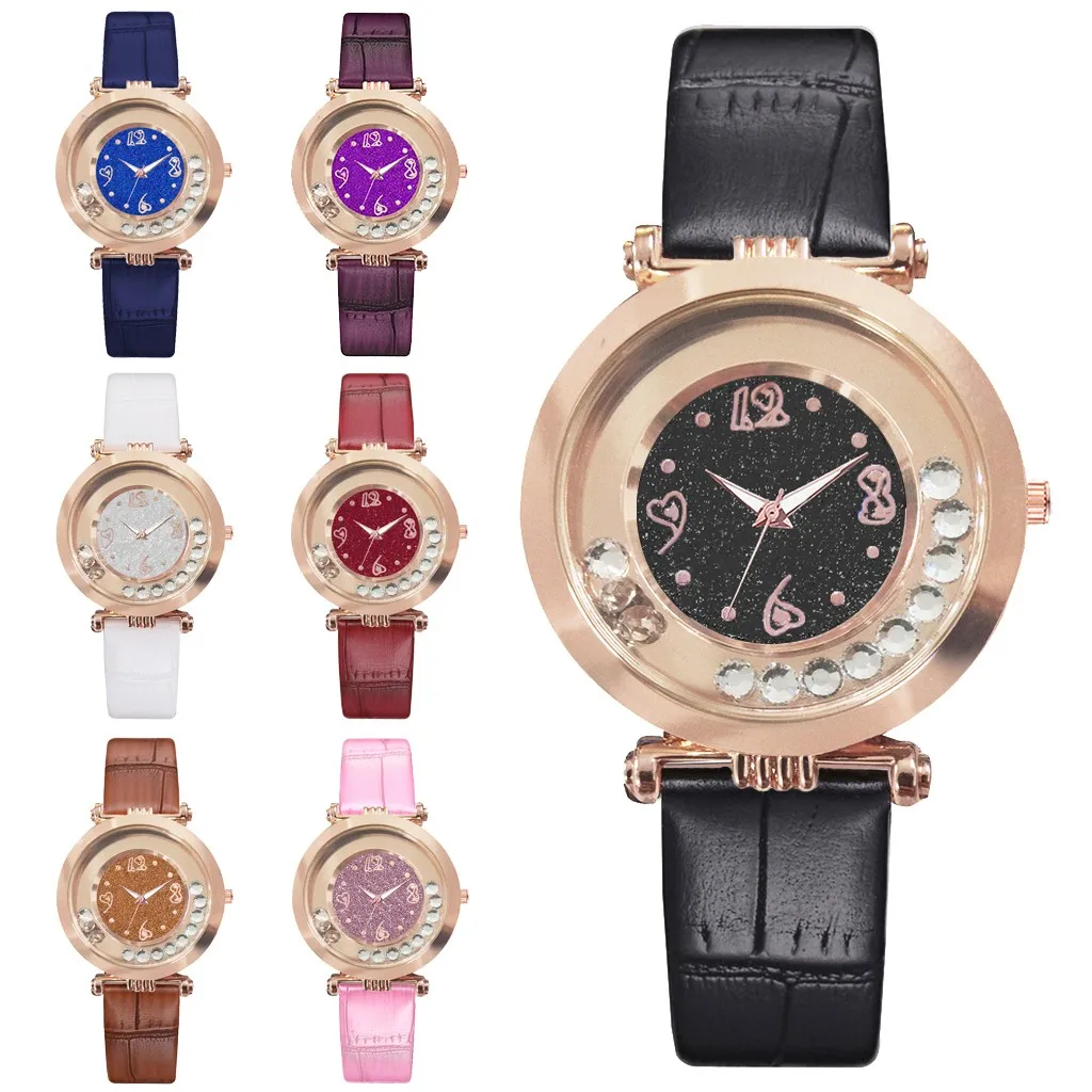 Модные женские часы со стразами, струящиеся алмазные бусины, кожаный ремень, Женские кварцевые наручные часы, повседневные часы, подарок Relogio Feminino