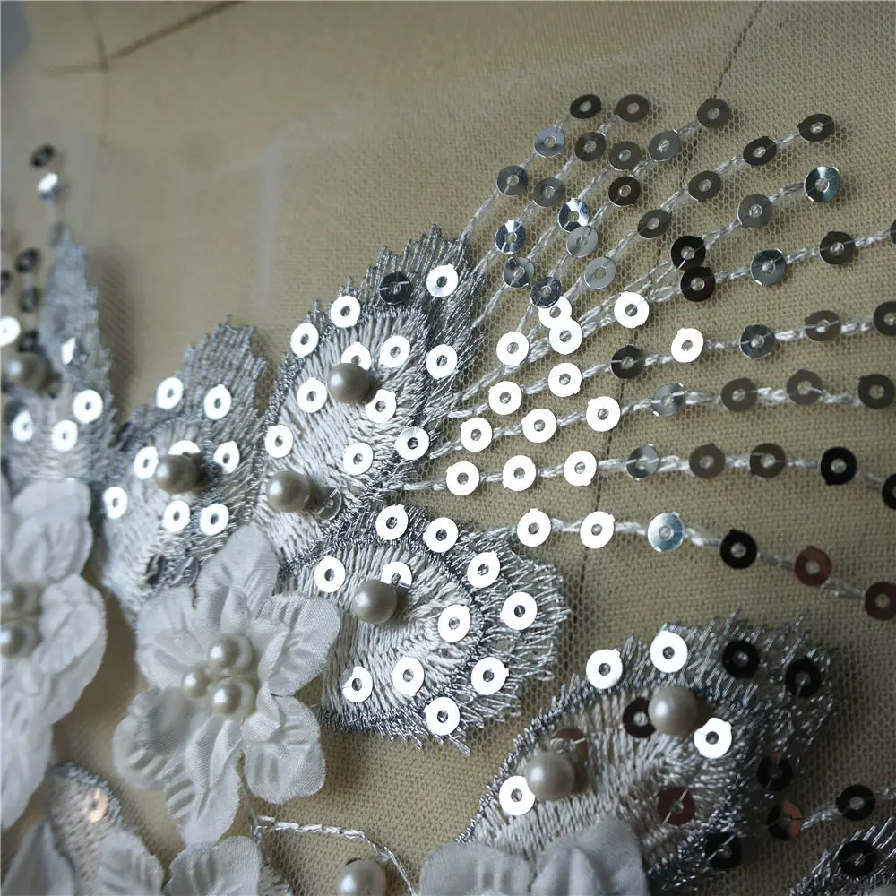 Новинка. Использование: только шитье. Размеры: 33 см x 28 см. Материал: ткань; Пайетки; Сетка. Применение: Свадебные платья; Свадебное платье и так далее.