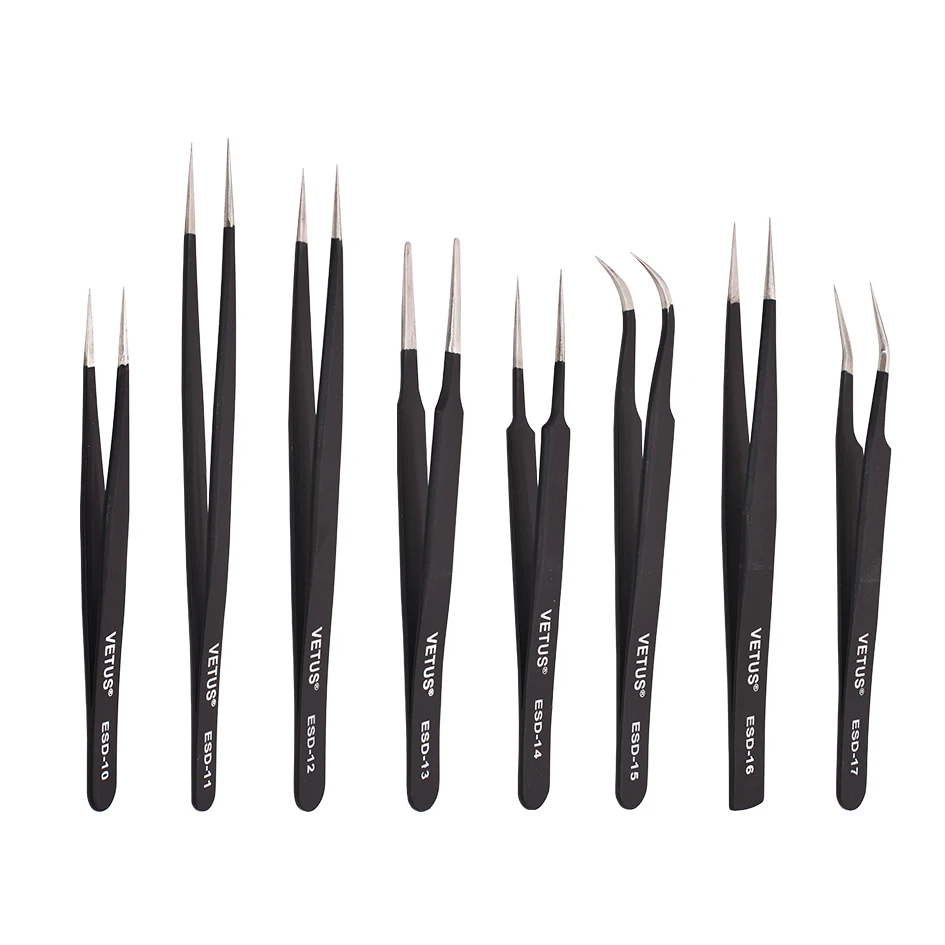 Черный Нержавеющая сталь пинцеты «VETUS» анти-магнитный HRC40 антистатические щипцы ST от электростатических разрядов, 10, 11, 12, 13, 14, 15, 16, 17, дляспециалистов по наращиванию ресниц телефона инструменты для ремонта
