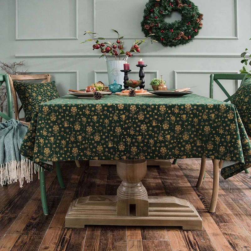 Скатерть зеленого золота с рождественской елкой, хлопковая льняная скатерть в американском стиле для фестиваля, для дома, для улицы, вечерние, для декора событий