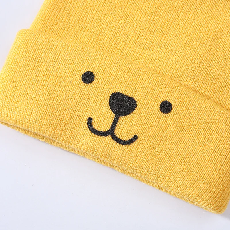 Зимняя вязаная шерстяная шапка с милым медведем для малышей, теплая шапочка для мальчиков и девочек