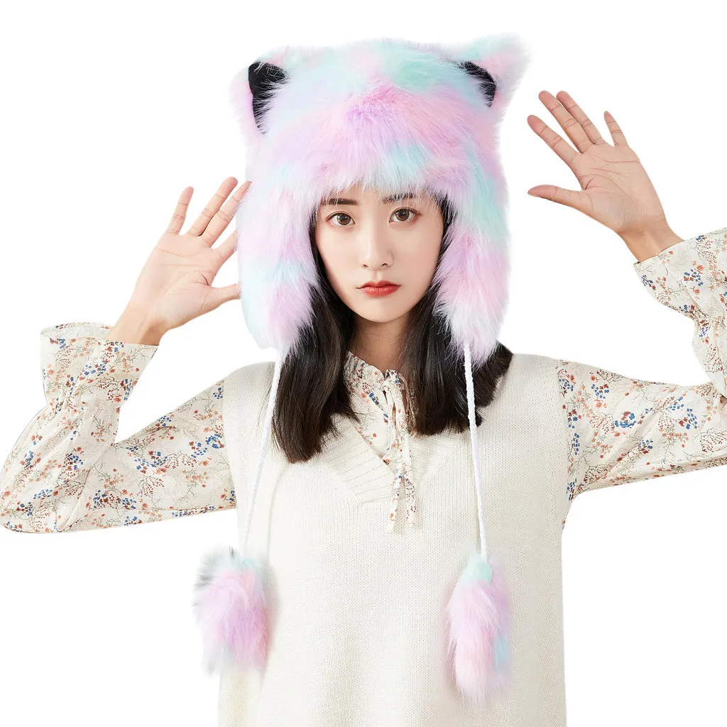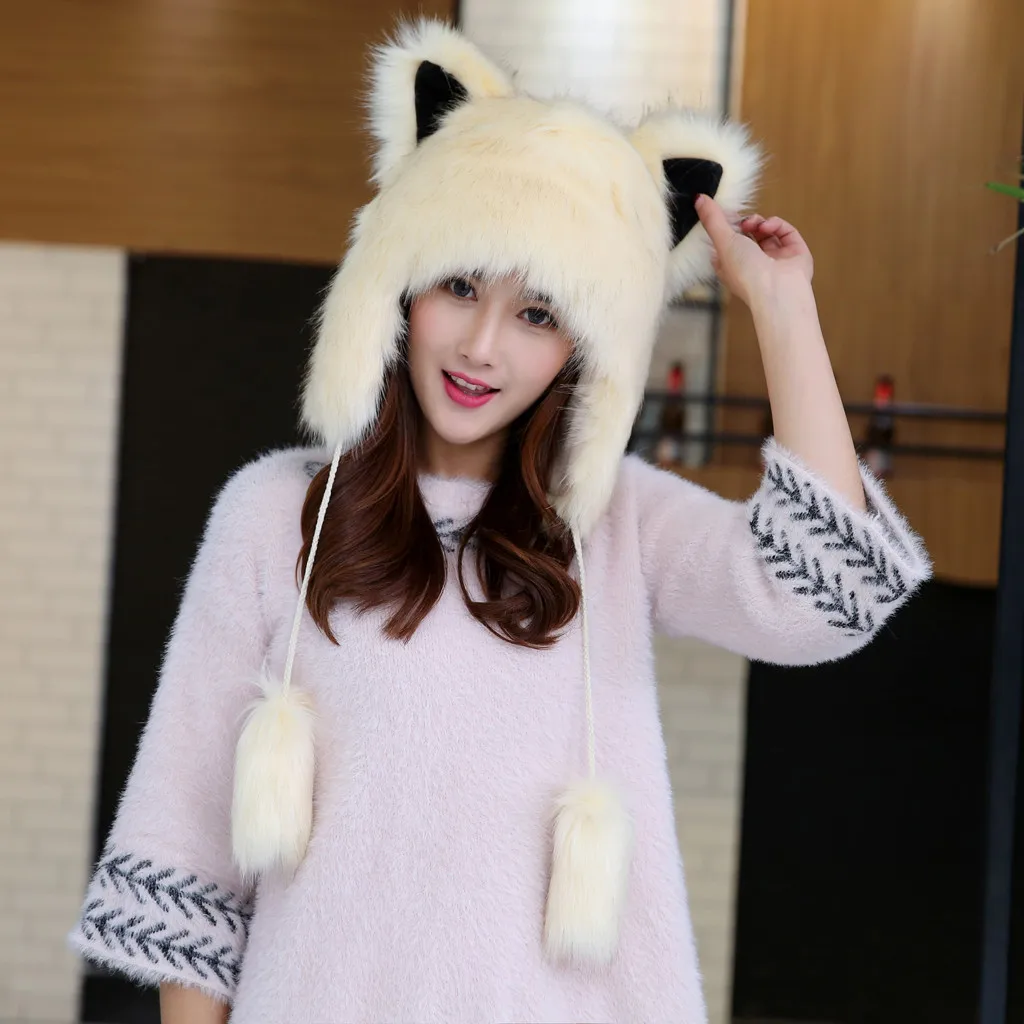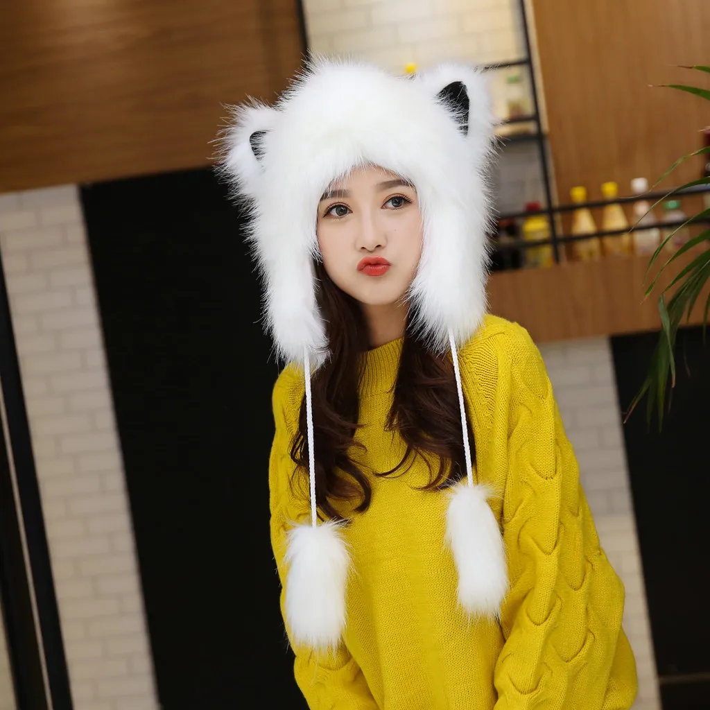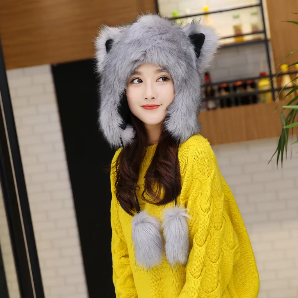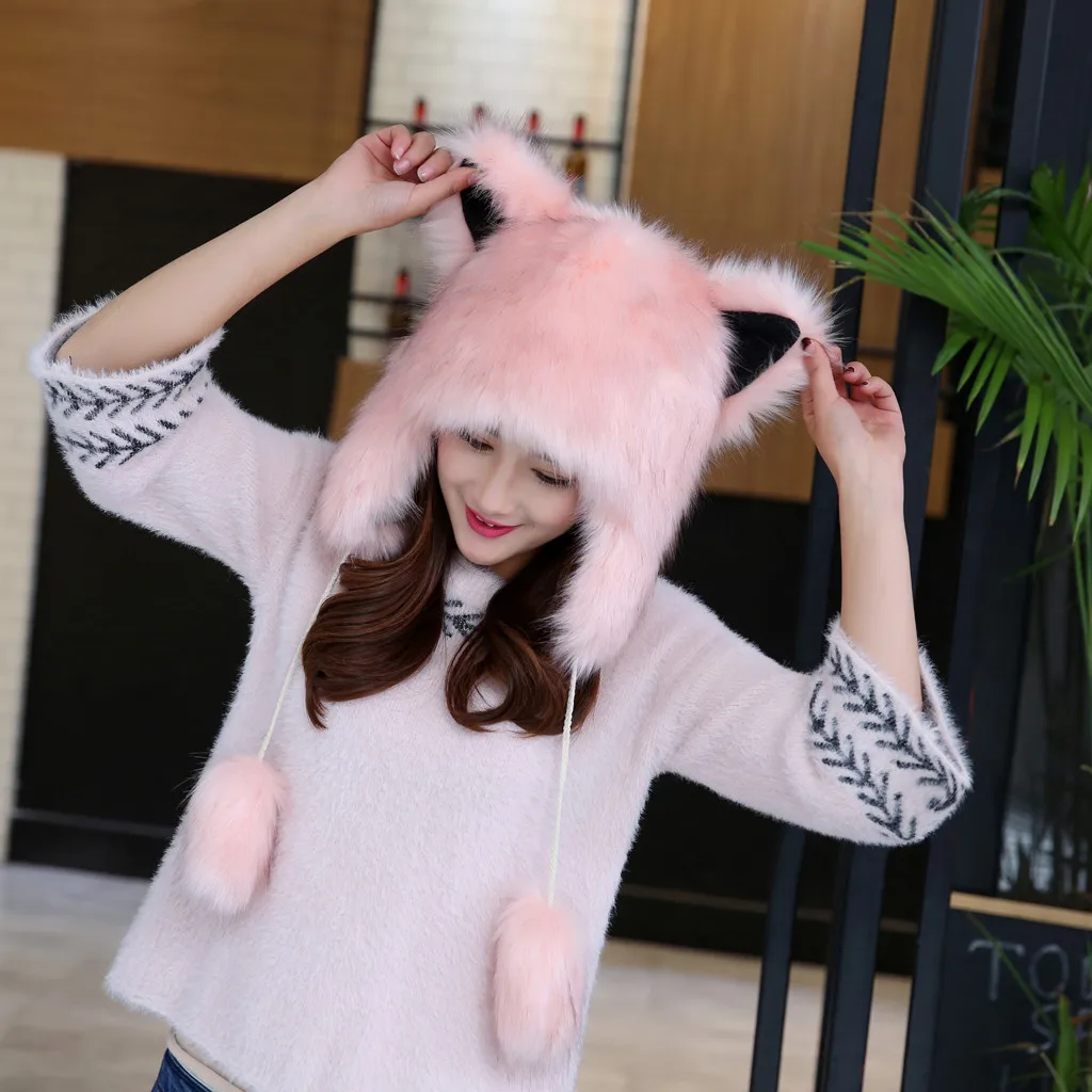 Женская зимняя плюшевая Толстая Милая мультяшная шапка с ушками, теплая плюшевая шапка