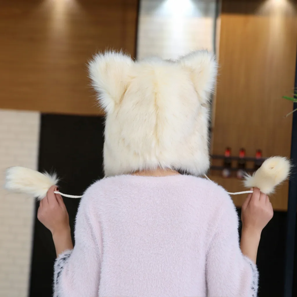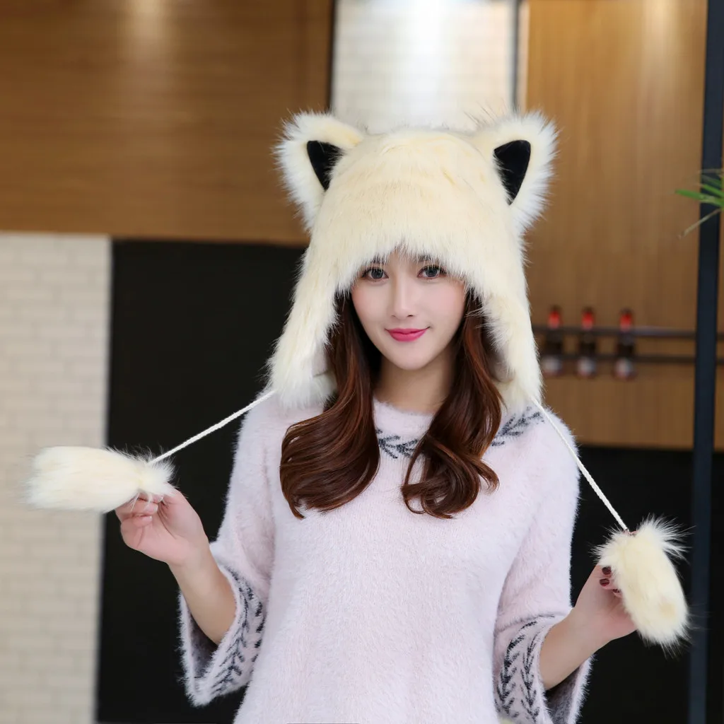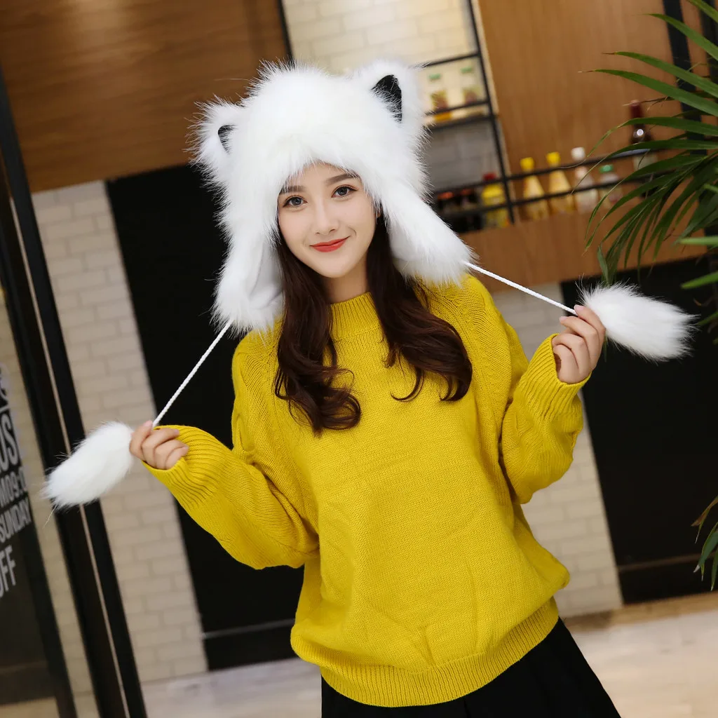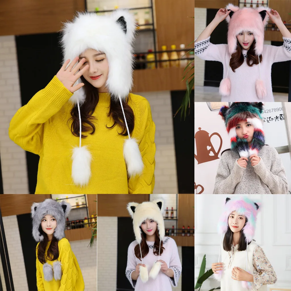 Женская зимняя плюшевая Толстая Милая мультяшная шапка с ушками, теплая плюшевая шапка