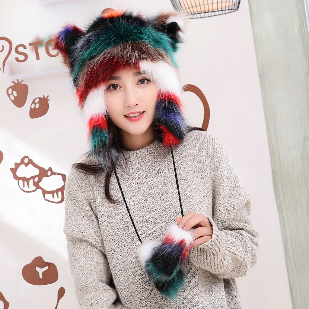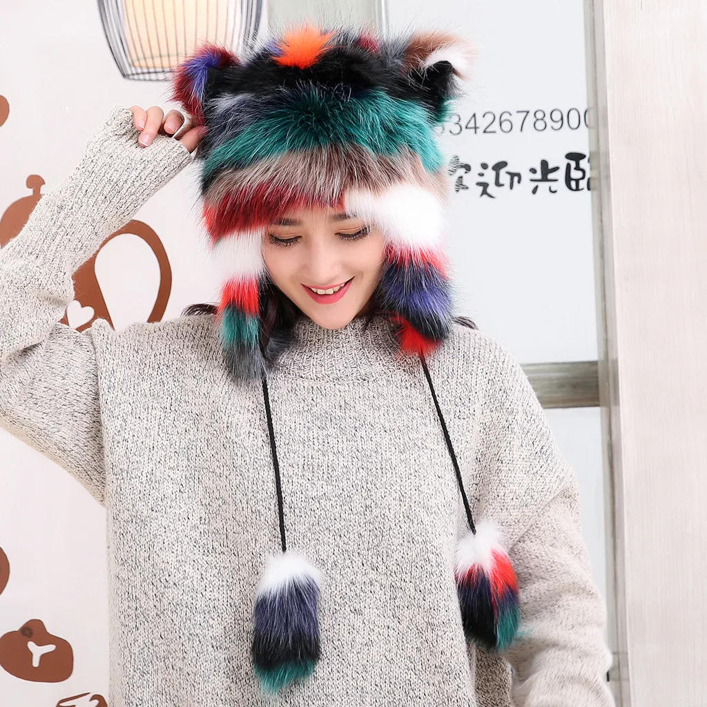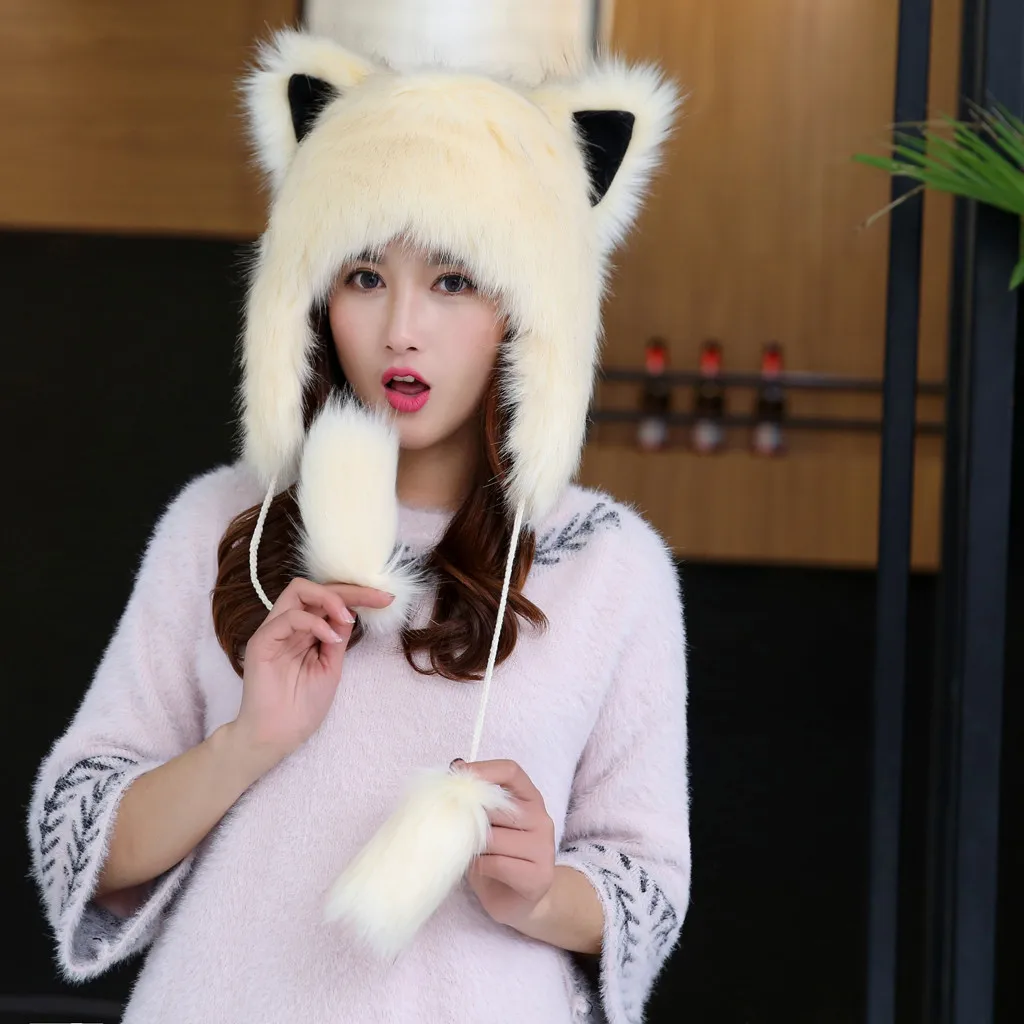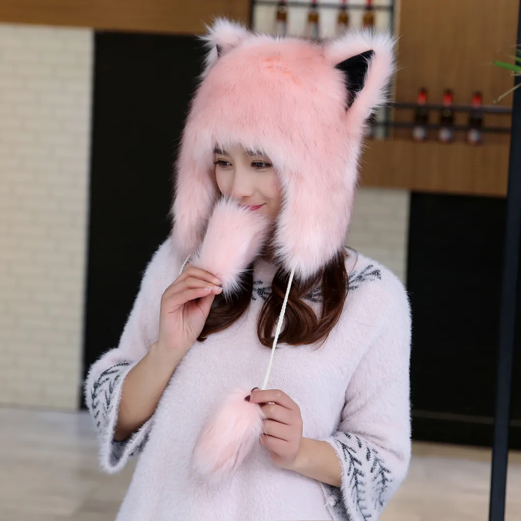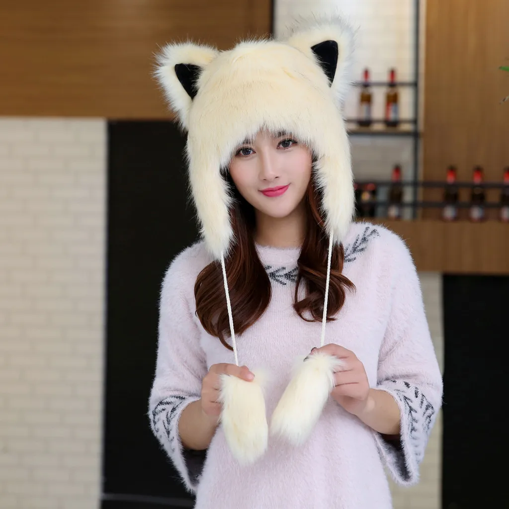 Женская зимняя плюшевая Толстая Милая мультяшная шапка с ушками, теплая плюшевая шапка