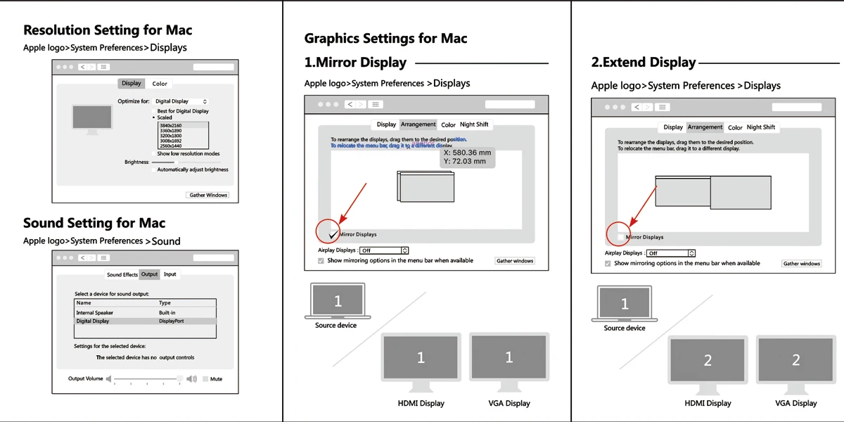 Настройка разрешения для MAC Логотип APPLE> Системные Настройки> дисплеи Настройки графики для MAC 1. Зеркальный дисплей ---- Логотип apple> Системные Настройки> дисплеи 2. Расширение дисплея ---- Логотип apple> Системные Настройки> дисплеи