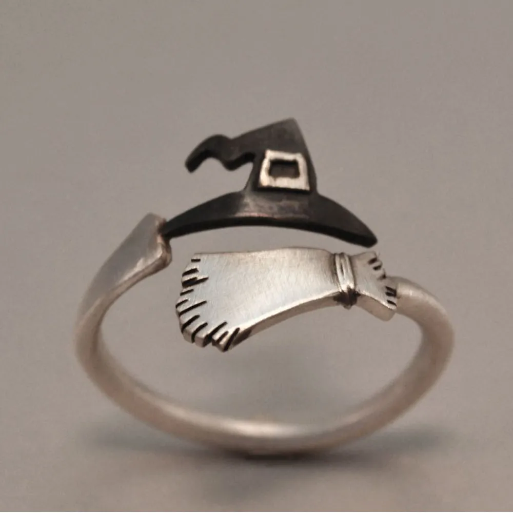 Вечерние кольца для косплея на Хэллоуин, привидение, ведьма, метла, палец