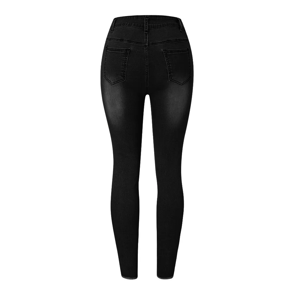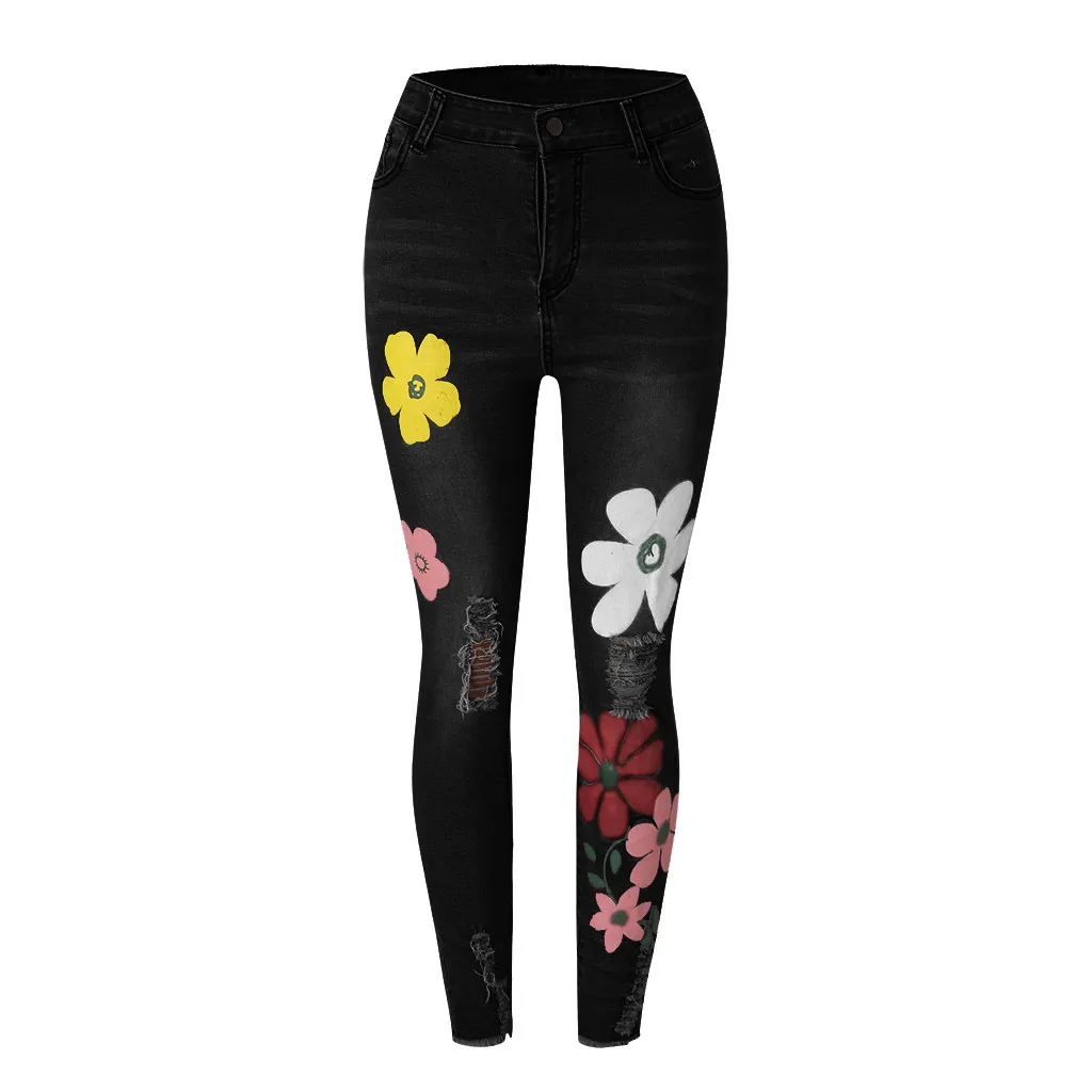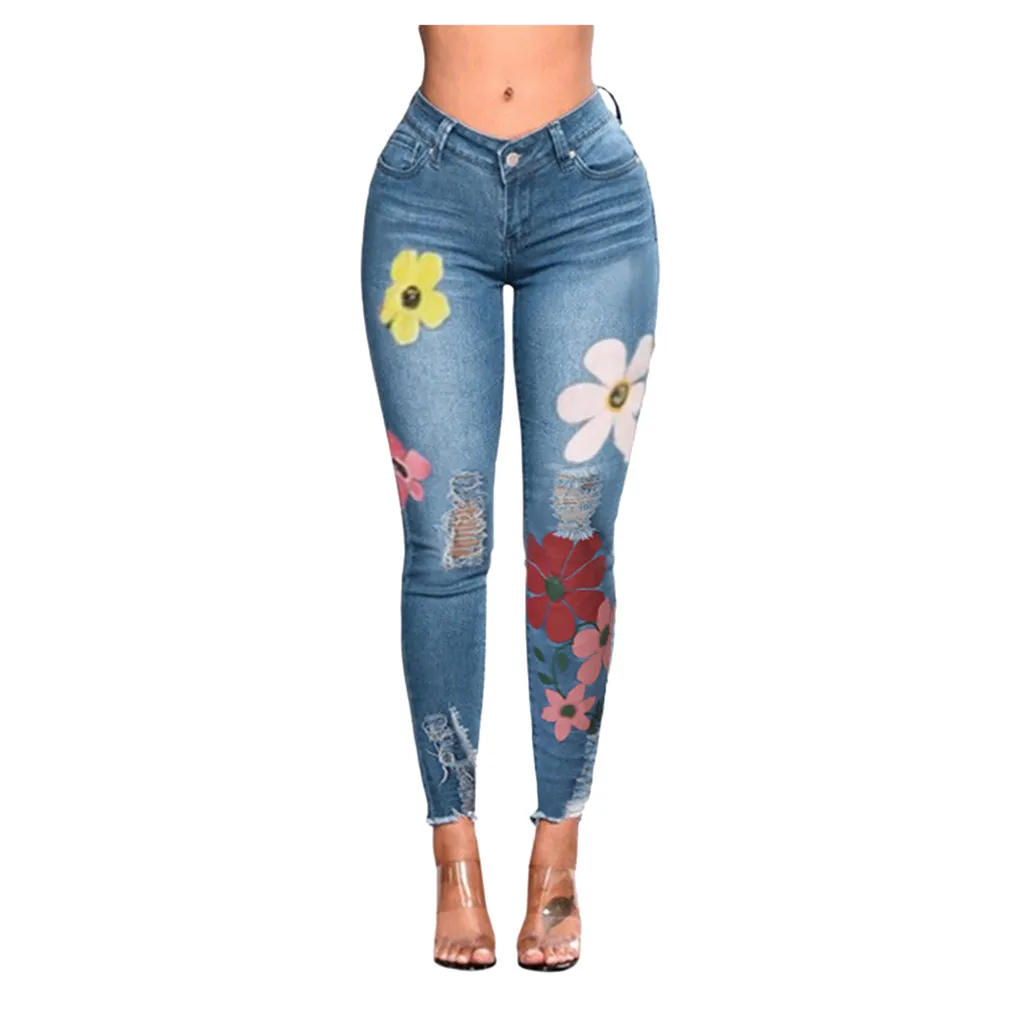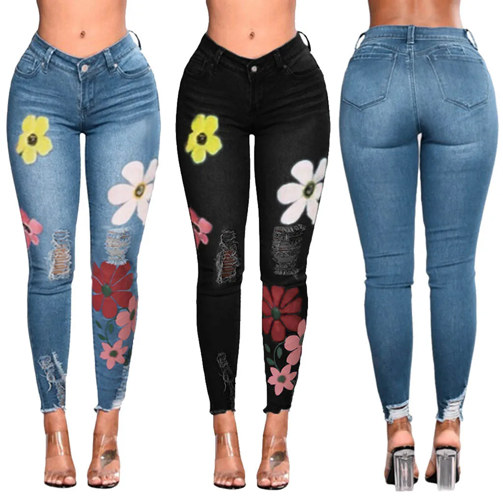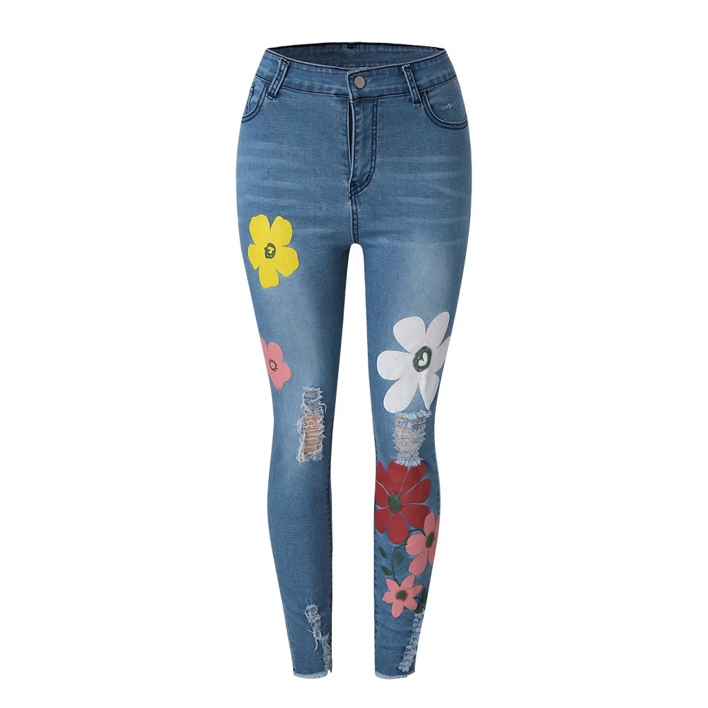Женские модные тонкие длинные джинсы с дырками и принтом