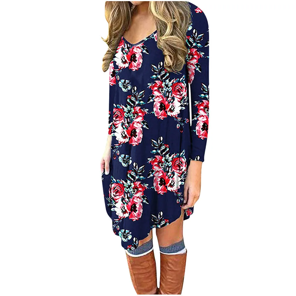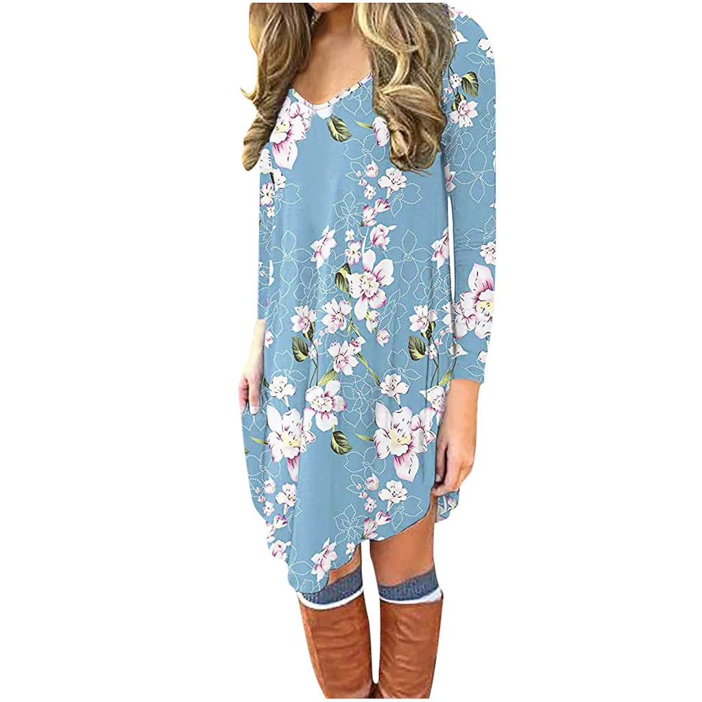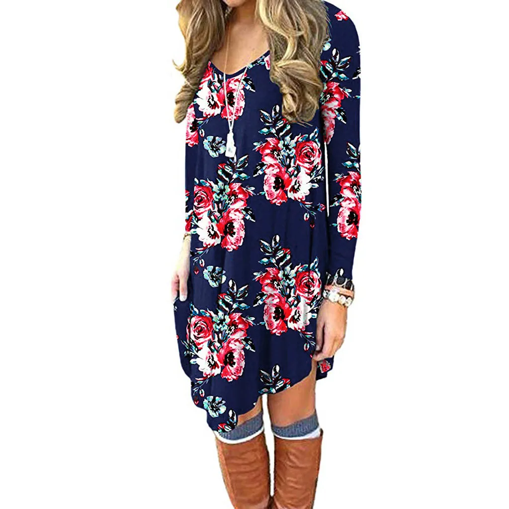 Women's Fashion O-Neck Long Sleeve Casual Loose T-Shirt Dress