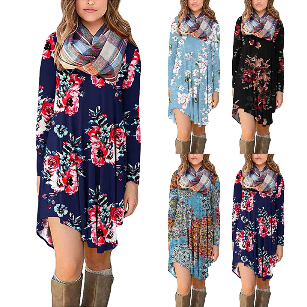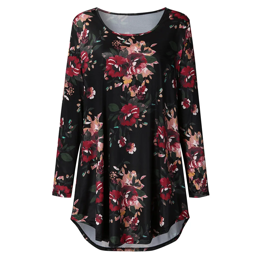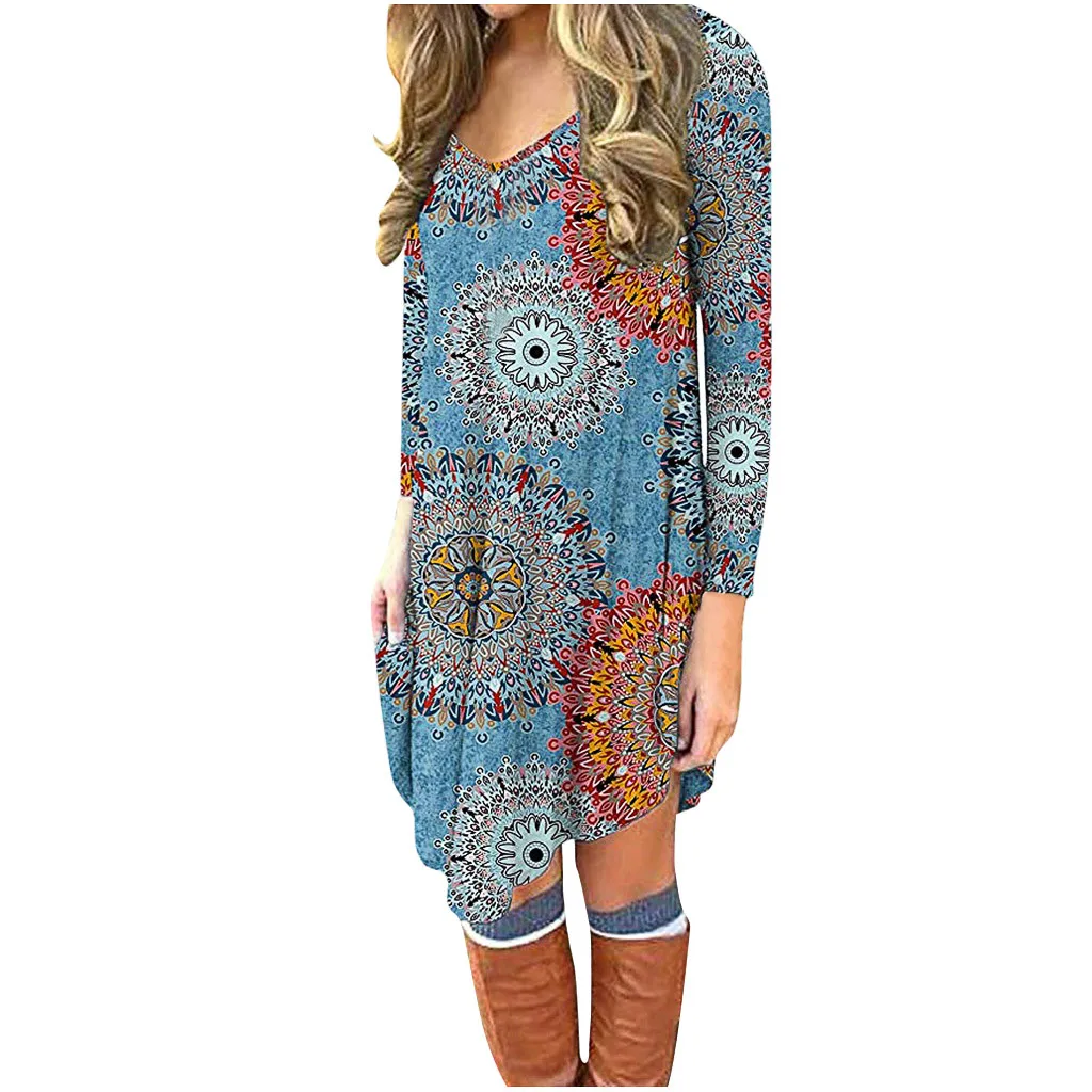 Women's Fashion O-Neck Long Sleeve Casual Loose T-Shirt Dress