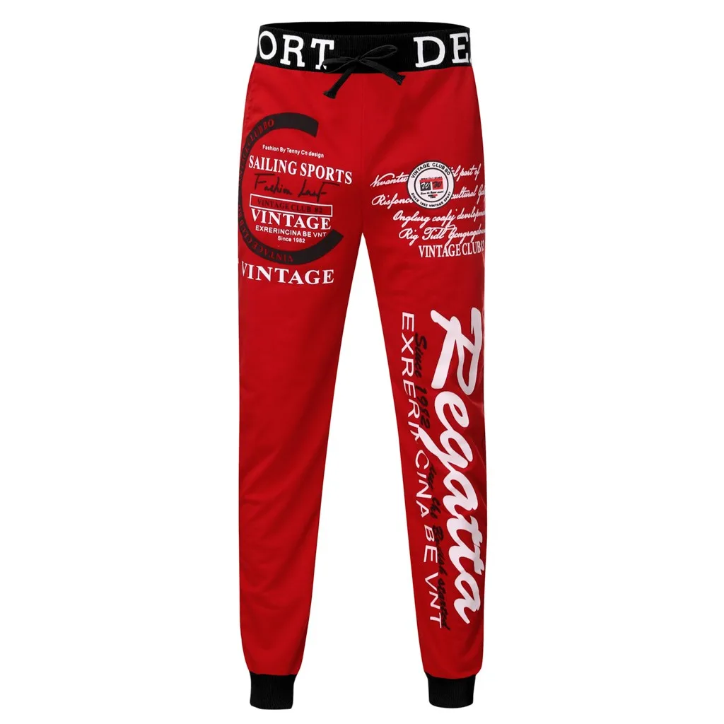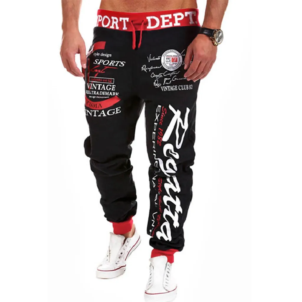 Мужские повседневные свободные длинные брюки с буквенным принтом на завязках с эластичной резинкой на талии