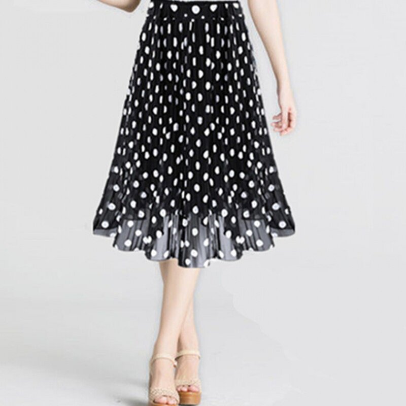 Новинка, женская шифоновая юбка в горошек, белая, черная, faldas, высокая талия, длинный шифон размера плюс, Jupe, женские плиссированные юбки в складку, XL, XXL, XXXL, AQ443