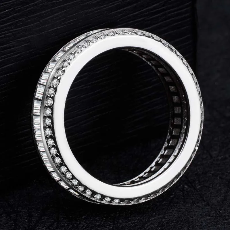 Бренд 925 Серебряный полный круг три ряда набор кольцо с бриллиантом Настоящее Bizuteria драгоценный камень Anillos Whtie Топаз Алмаз Ювелирное кольцо коробка