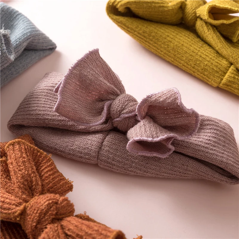 Мягкая вязаная повязка на голову для маленьких девочек; вязаный тюрбан с перекрестным бантом; эластичная резинка для волос