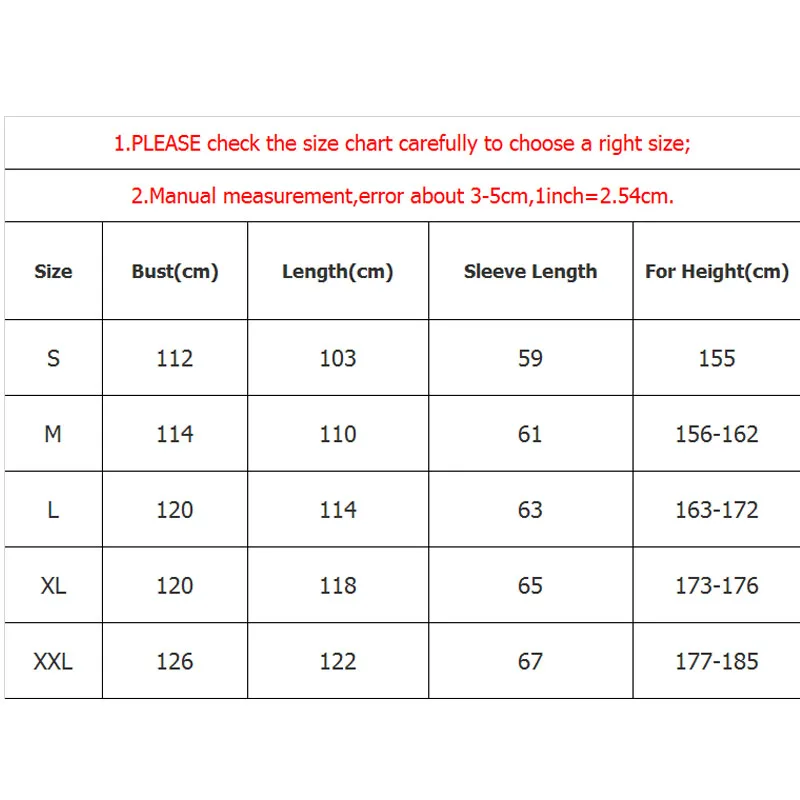 Пожалуйста, внимательно проверьте таблицу размеров, чтобы выбрать правильный размер;
