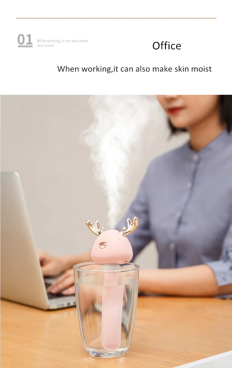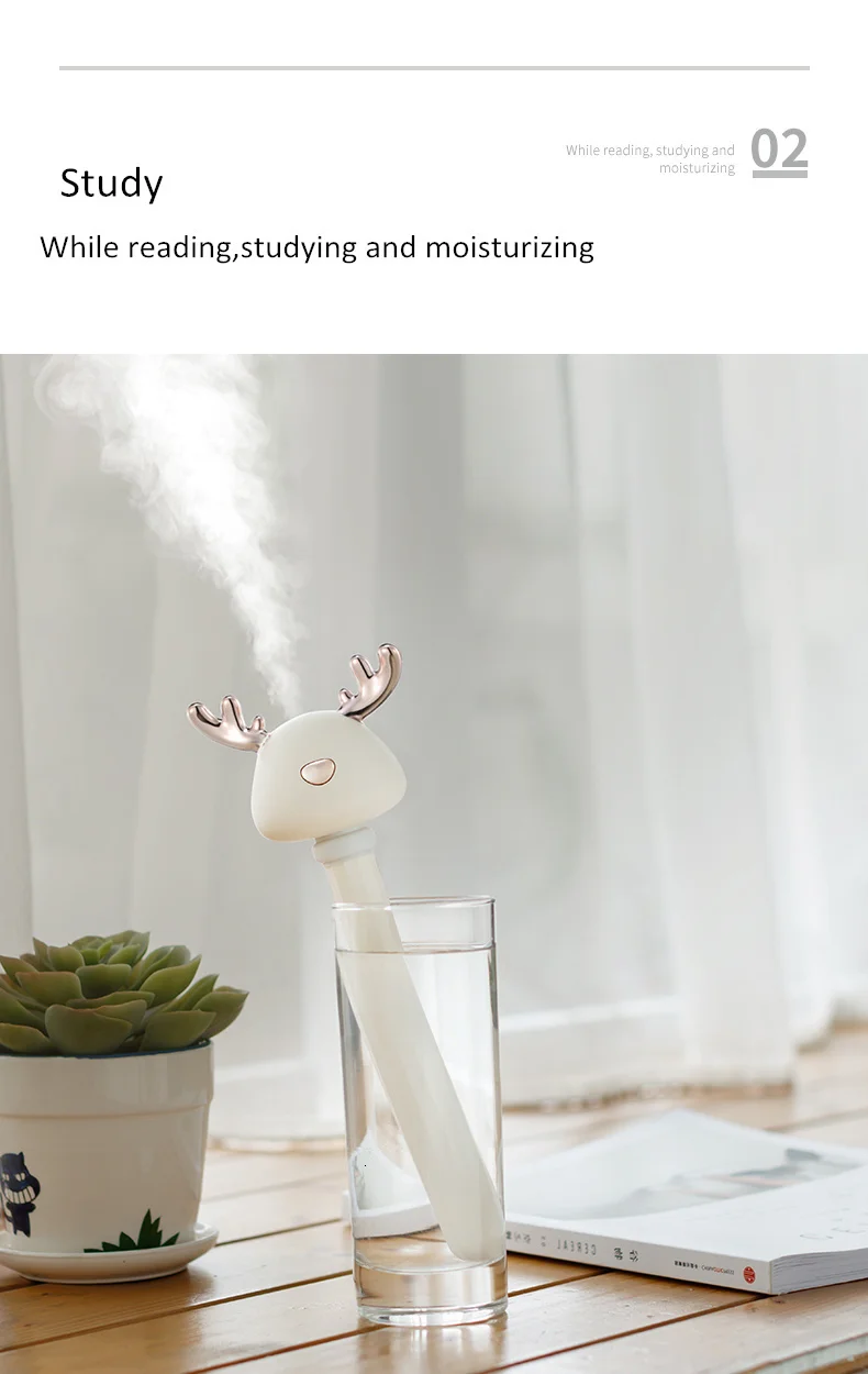 Особенности: -100% новый бренд и высокого качества -Тихая и непрерывная работа не будет мешать вашей работе, сну и вождению. -Диффузный туман на протяжении всего живого пространства и увеличивает влажность кожи. -Модный дизайн, экологически чистый и тихий шепот -Qulck увлажнение и очистка воздуха, уменьшение статического электричества -Применение: Гостиная Кабинет Спальня отель офис автомобиля и т. Д. Никаких ограничений Креативный дизайн без резервуара для воды Ограничение на разрыв фиксированного контейнера Название продукта: увлажнитель для маленьких оленей Номер товара: SX-E321 Материал: ABS/силикон/электронные компоненты Размер изделия: длинный 84*47*233 мм Короткий 84*47*173 мм Вес: 126 г Цвет: белый, розовый, бежевый Рабочее напряжение: 5V/1A Рабочий ток: 250-400ма Потребляемая мощность: 2,0 Вт Количество распыления: 30-45 мл/ч Время использования: 4-8 ч 1. Нажмите на кнопку Синий светильник находится в режиме непрерывного распыления, Время 4H автоматически останавливается 2. Нажмите еще раз Красный светильник находится в прерывистом режиме распыления, Автоматическая остановка при синхронизации 8H 3. Третий щелчок Светильник индикатора выключен, спрей выключен