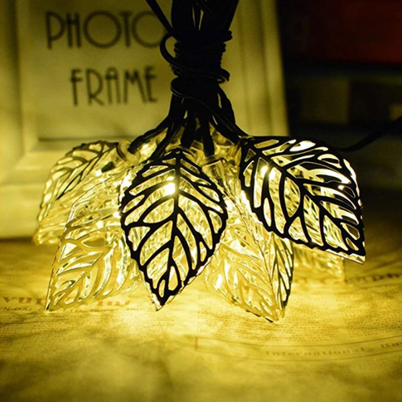 Солнечный СВЕТОДИОДНЫЙ Свет Строка 20 светодиодный кованого листья гирлянда для использования вне помещения подарок на Рождество; тапочки в форме сад для украшения светятся в темноте